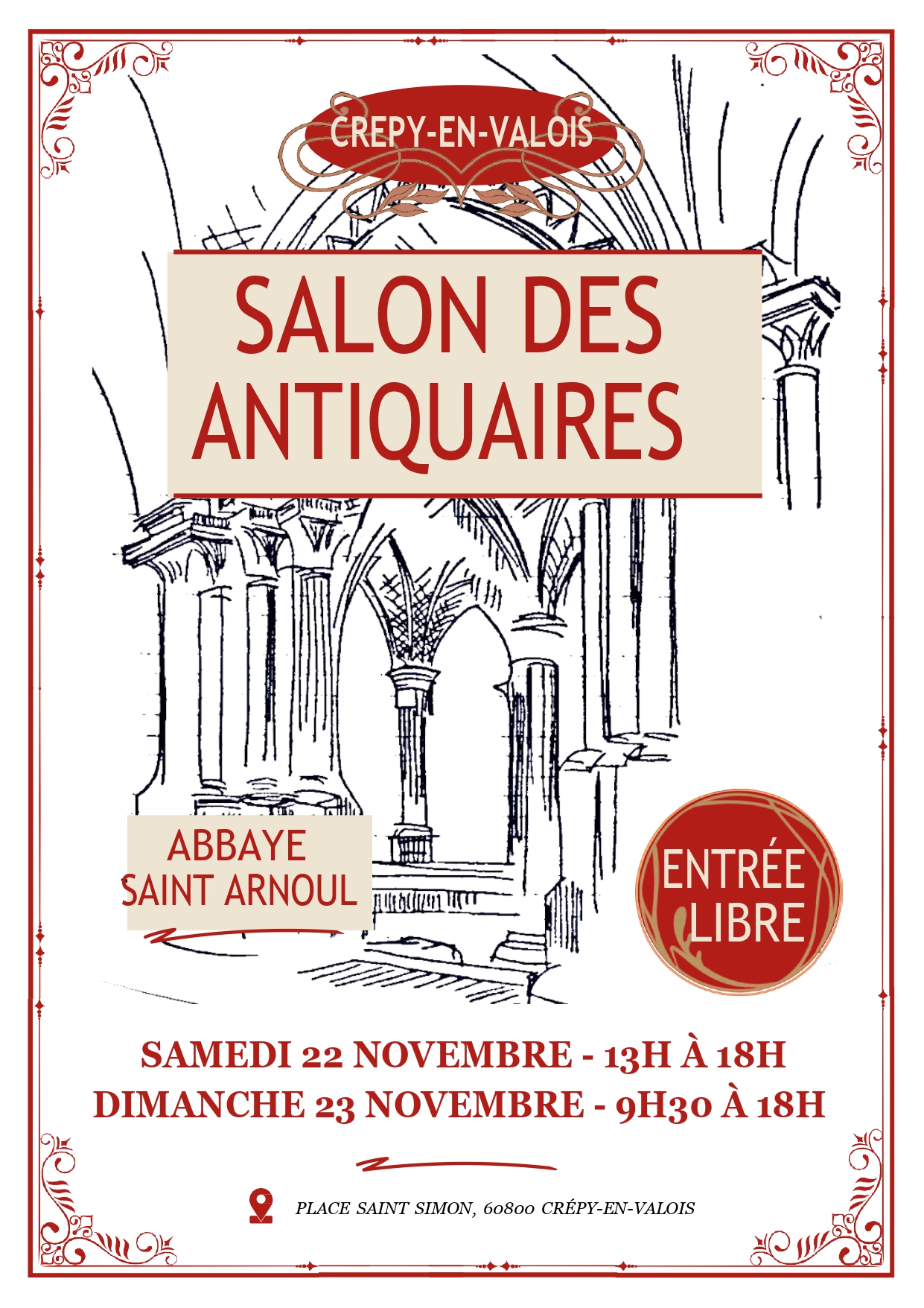 Rendez-vous samedi 22 novembre de 13h à 18h et dimanche 23 novembre de 9h30 à 18h à l’abbaye Saint-Arnoul pour le Salon des antiquaires.