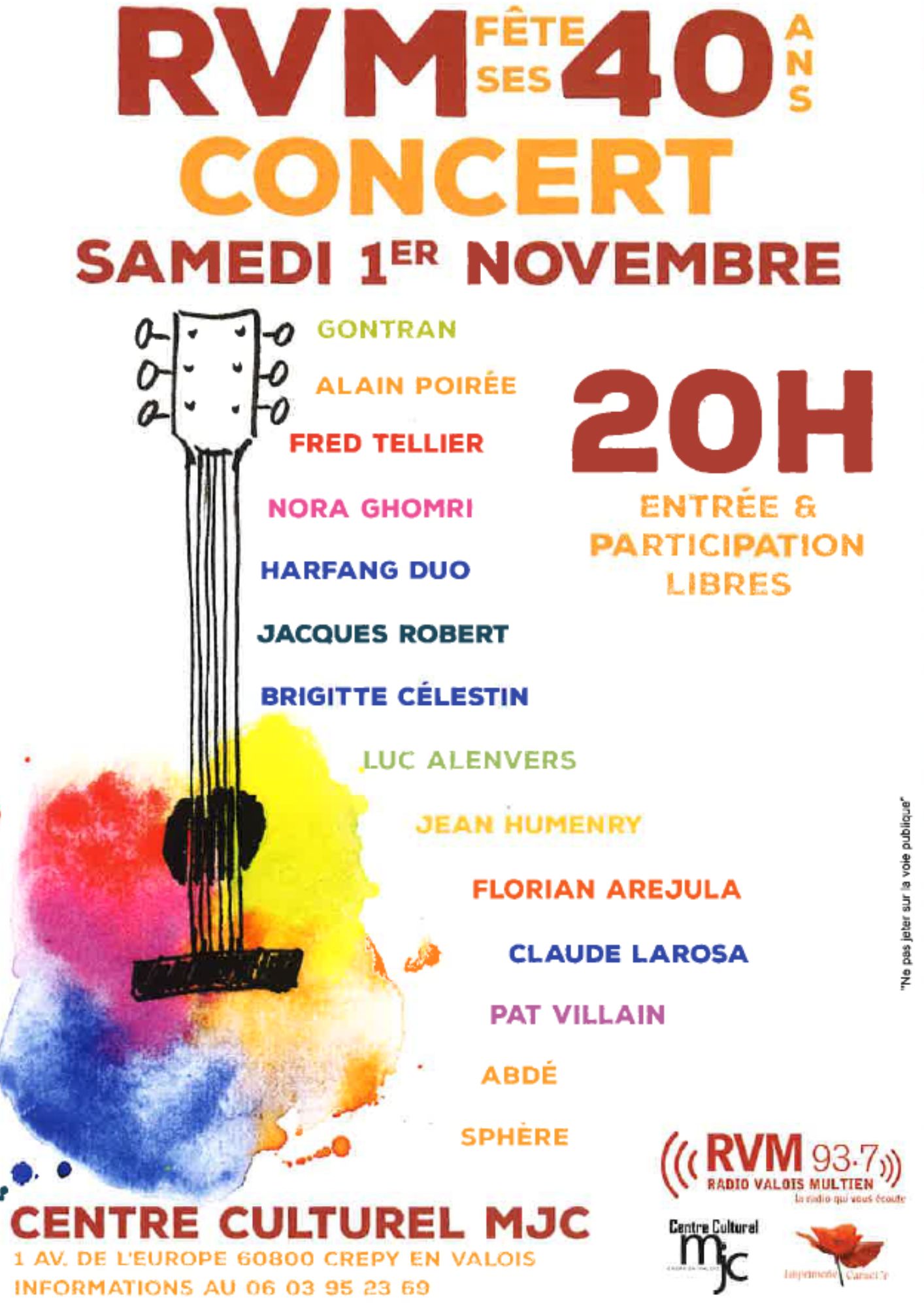 À l’occasion de ses 40 ans d’existence, la radio locale RVM (Radio Valois Multien) vous invite à une soirée musicale exceptionnelle !