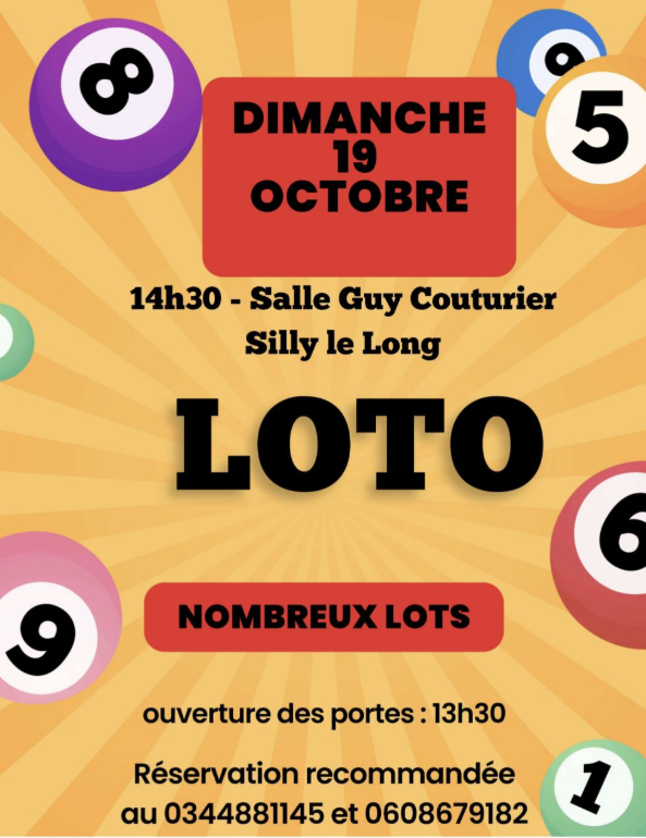 Grand loto annuel, organisé par l'association "Fêtez Silly" Ouverture des portes à 13h30 De nombreux lots à gagner