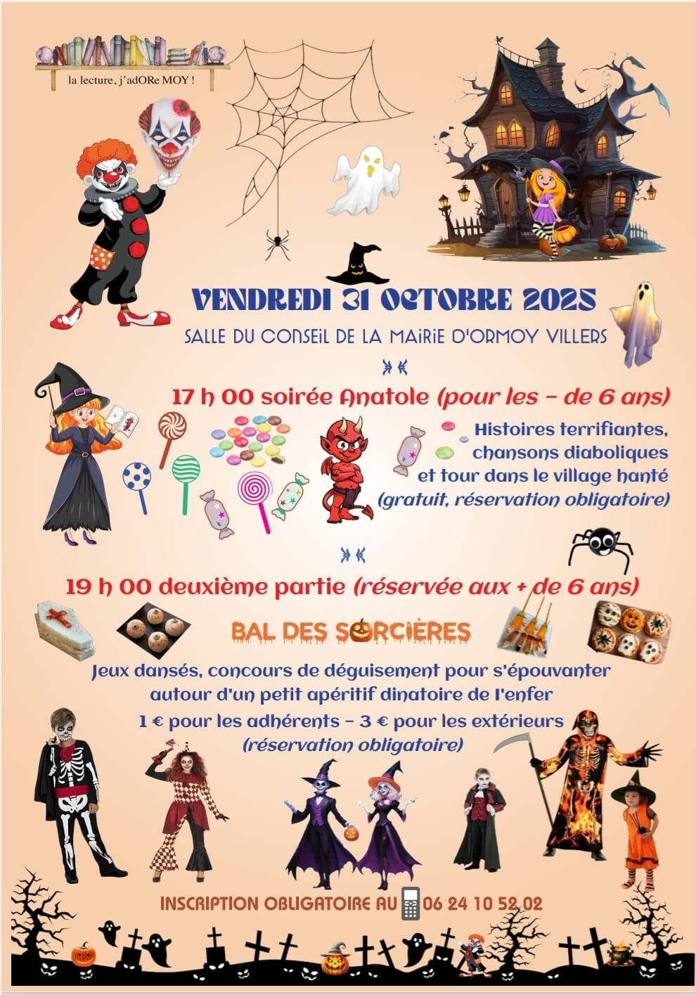 Lâassociation « La lecture, jâadORe MOY! » organise une animation pour les enfants, le 31 octobre octobre 2025 Ă Ormoy-Villers dans la salle du Conseil Municipal.