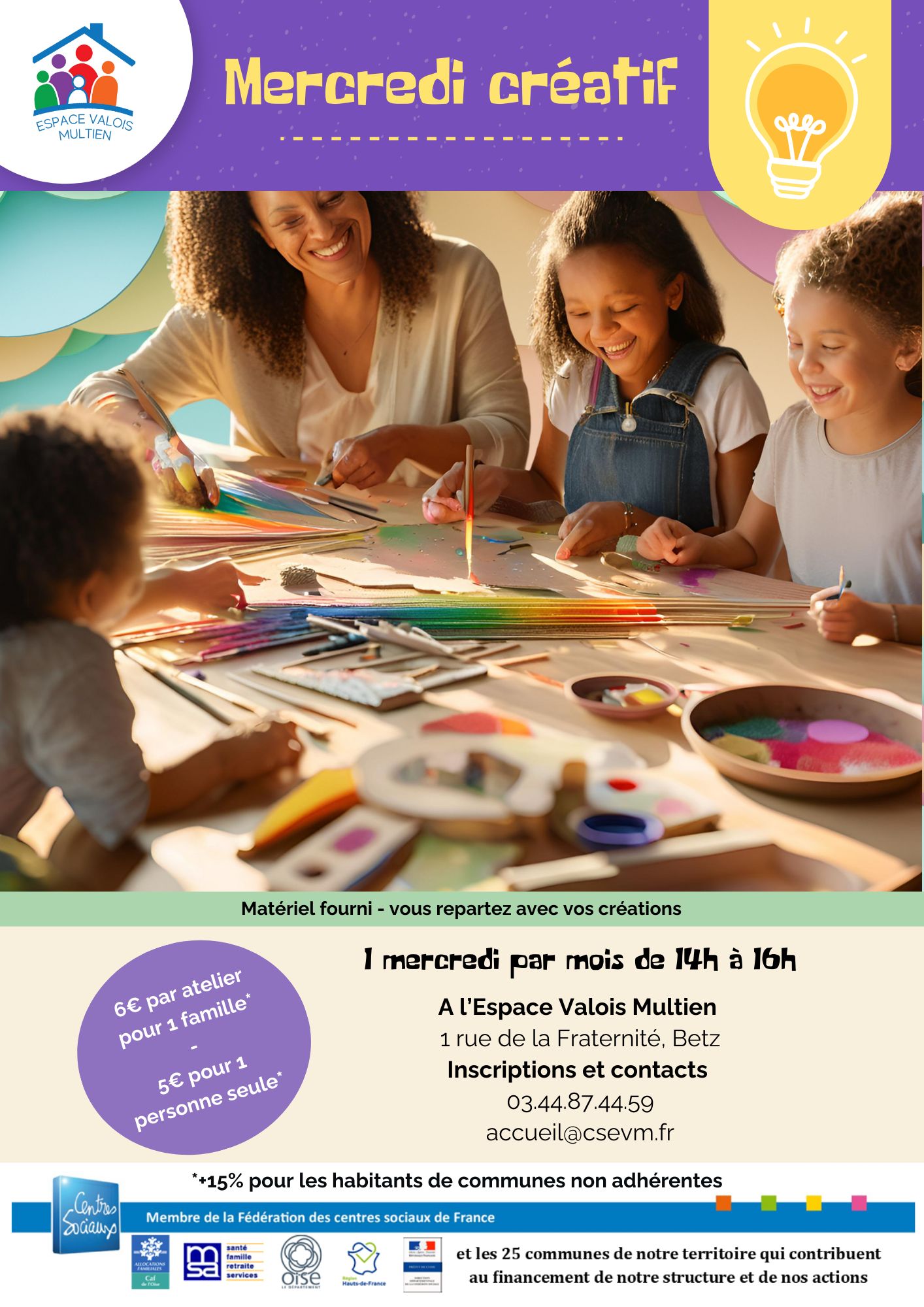 L’Espace Valois Multien vous propose un mercredi par mois, un atelier où petits et grands peuvent s’initier à l'art créatif et repartir avec leur propre création !