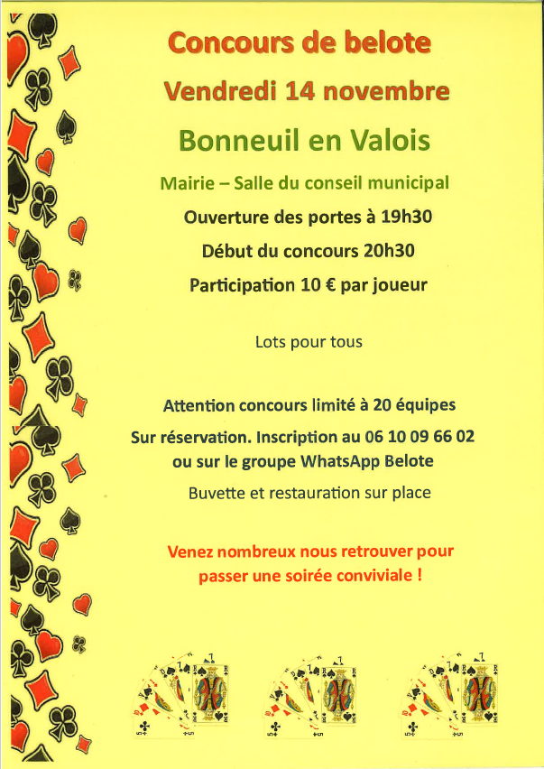 Venez nombreux participer à notre traditionnel concours de Belote !