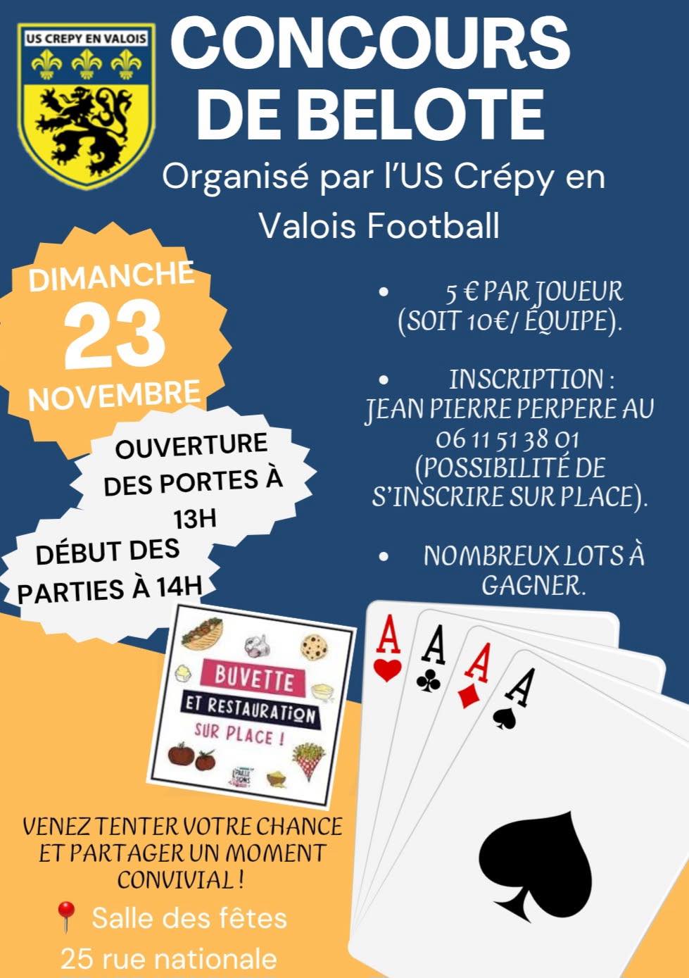 L’USC Football organise un concours de belote dimanche 23 novembre 2025 à la salle des fêtes.