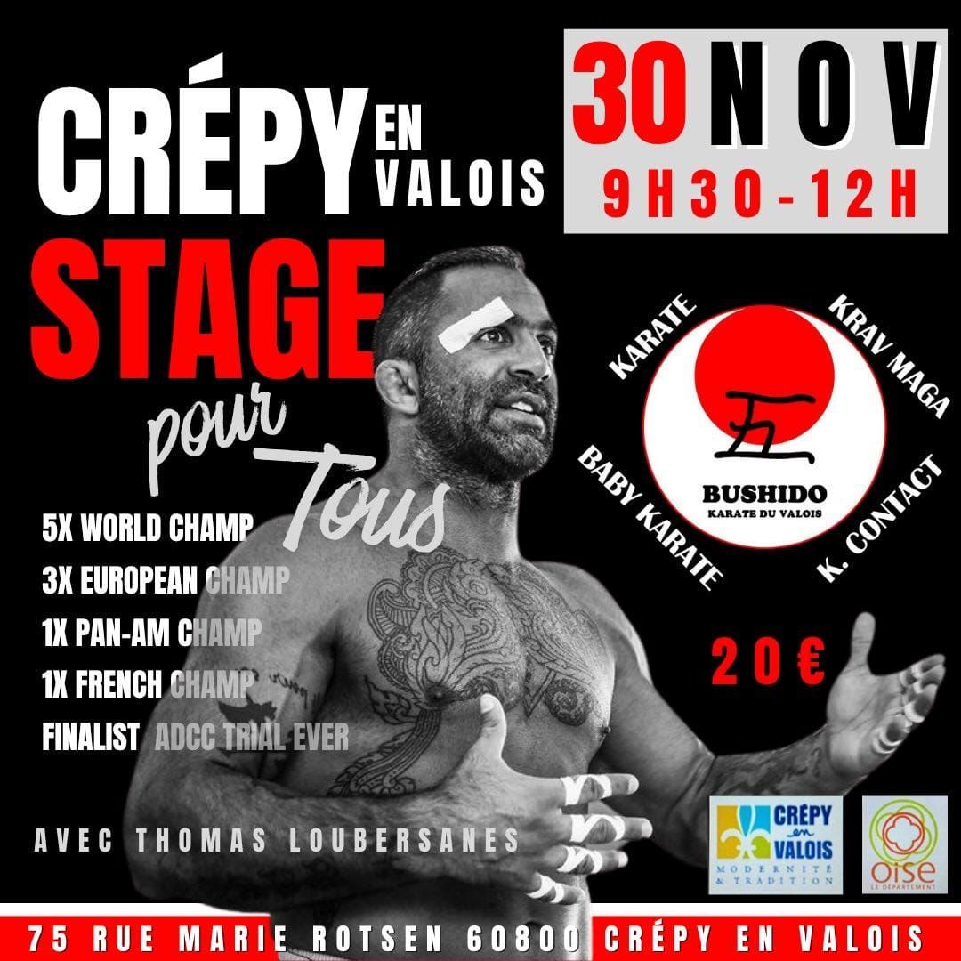 Le club Bushido - Karaté du Valois vous attend nombreux pour ce stage pour tous animé par Thomas Loubersanes