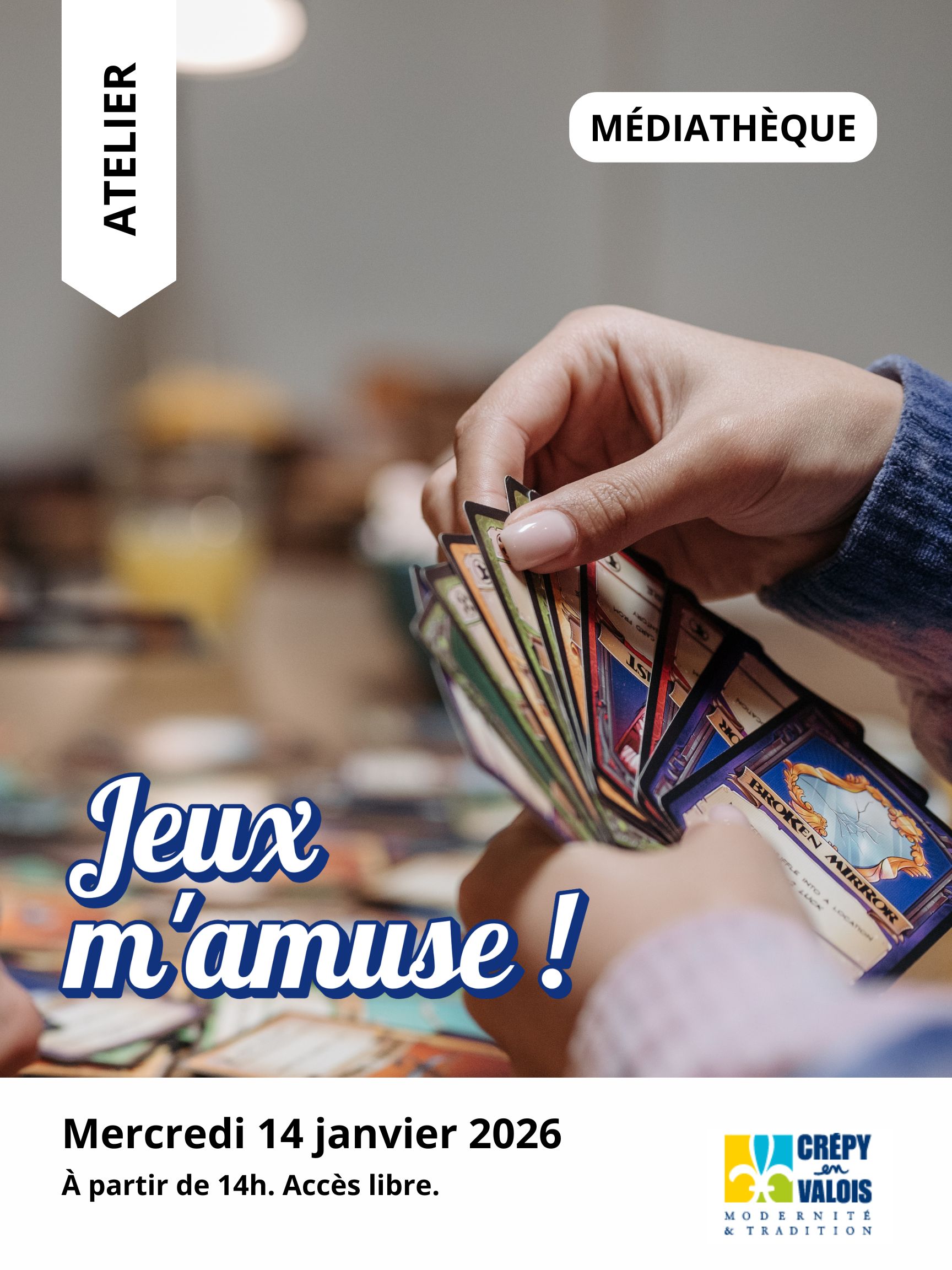Venez passer un après-midi récréatif avec nos jeux de société ! Accès libre 📅 Mercredi 14 janvier 🕑 A partir de 14h 📍 Médiathèque de Crépy-en-Valois