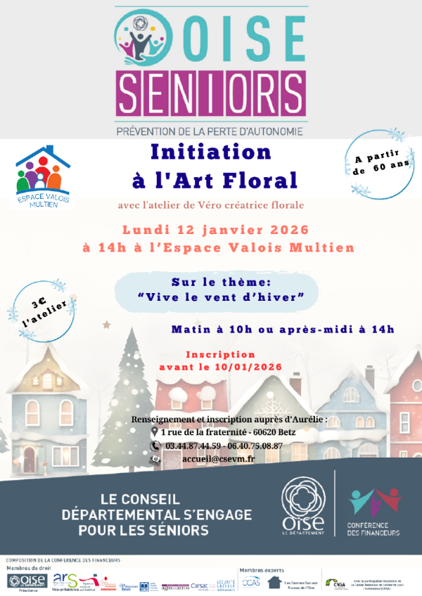 Initiation Ă l'Art Floral, sur le thĂšme "Vive le vent d'hiver" đšïž Avec l'Atelier de VĂ©ro, crĂ©atrice florale đïž Lundi 12 janvier đ 10h ou 14h đ¶ 3⏠A partir de 60 ans đ§âđŠł