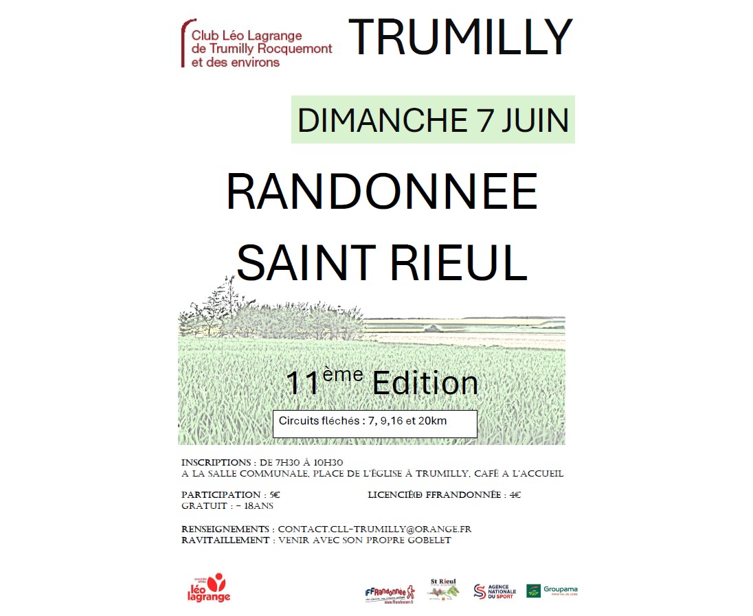 Le Club Léo Lagrange de Trumilly Rocquemont et des environs organise sa 11ème édition de la Randonnée Saint Rieul 🥾
