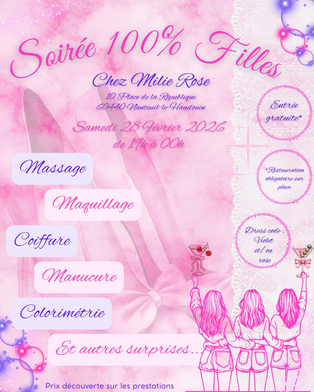 Rendez‑vous chez Milie Rose à Nanteuil‑le‑Haudouin pour une Soirée 100 % Filles placée sous le signe du cocooning.