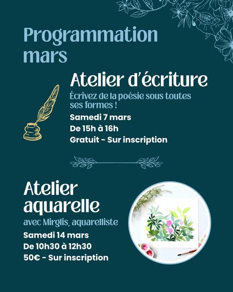 Ce mois-ci, nous vous proposons plusieurs ateliers pour laisser s'épanouir votre créativité 🌟