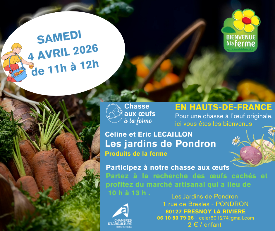Une chasse à l'œufs de Pâques est organisée par les Jardins de Pondron. Elle se déroulera aux alentour de la ferme.