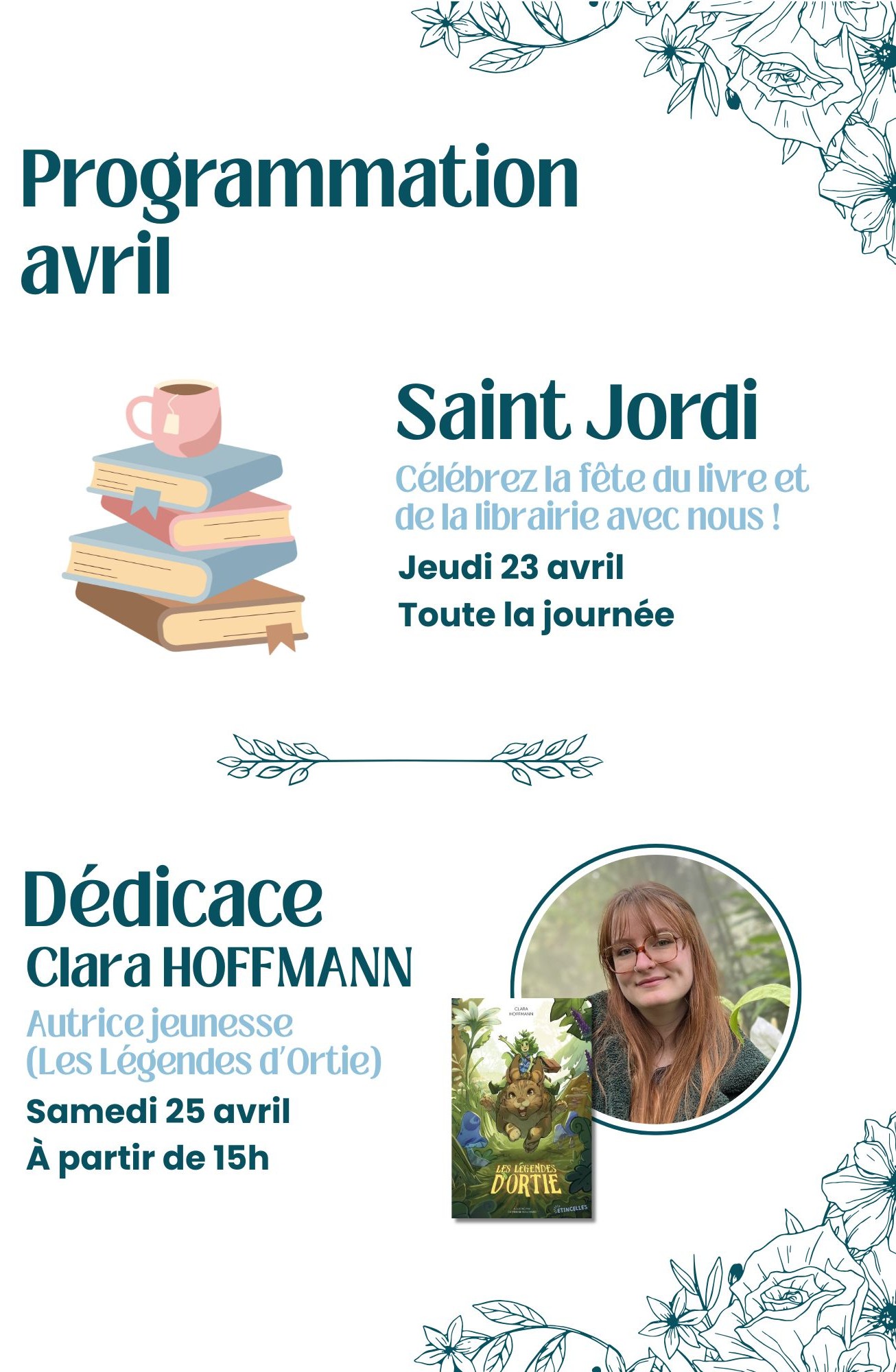 Rencontrez Clara Hoffmann, autrice jeunesse de Les Légendes d’Ortie, lors d’une séance de dédicace.