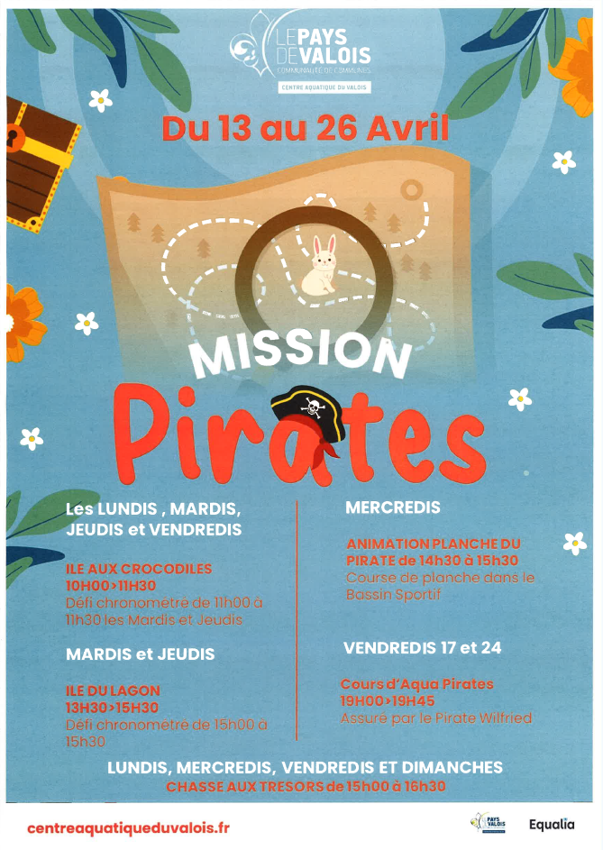 Pendant les vacances d’avril, le Centre Aquatique du Valois invite les enfants à embarquer pour Mission Pirates !