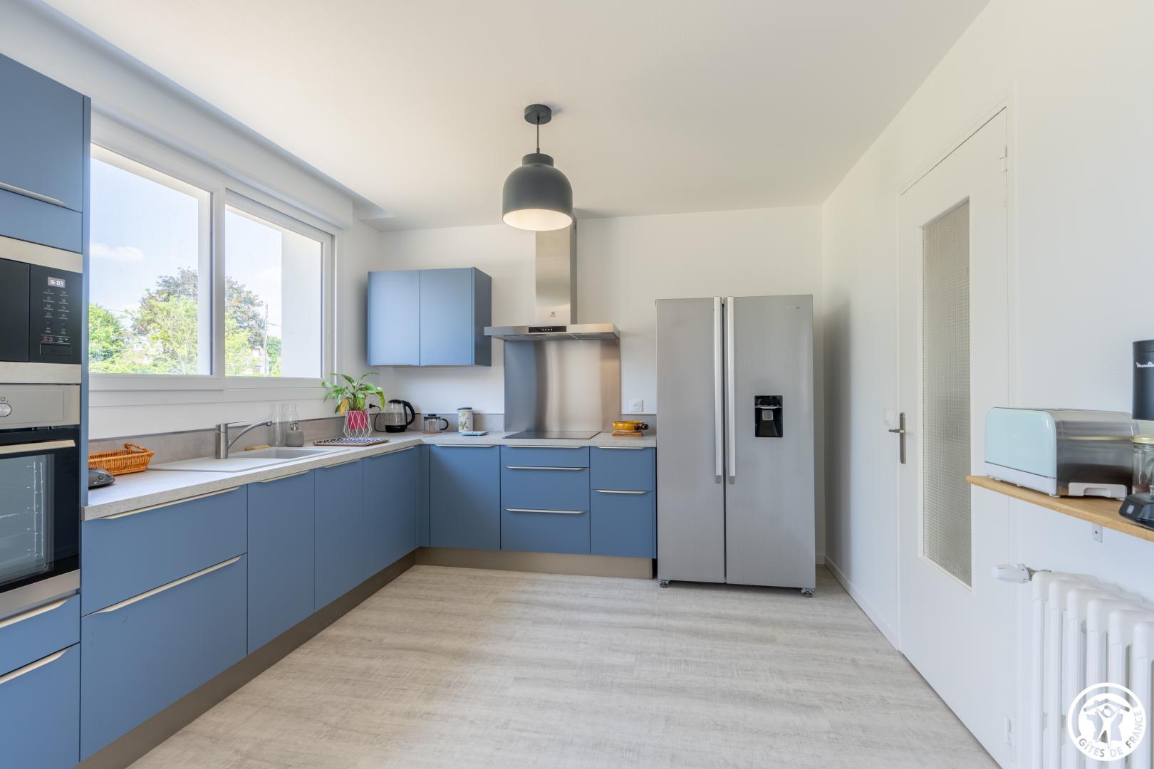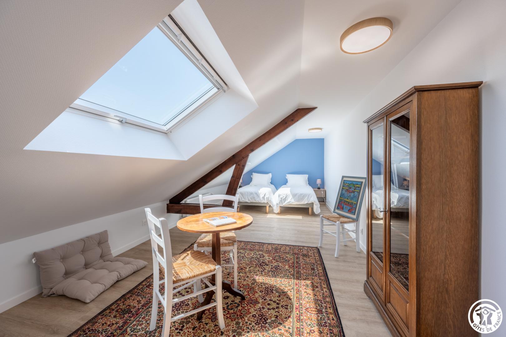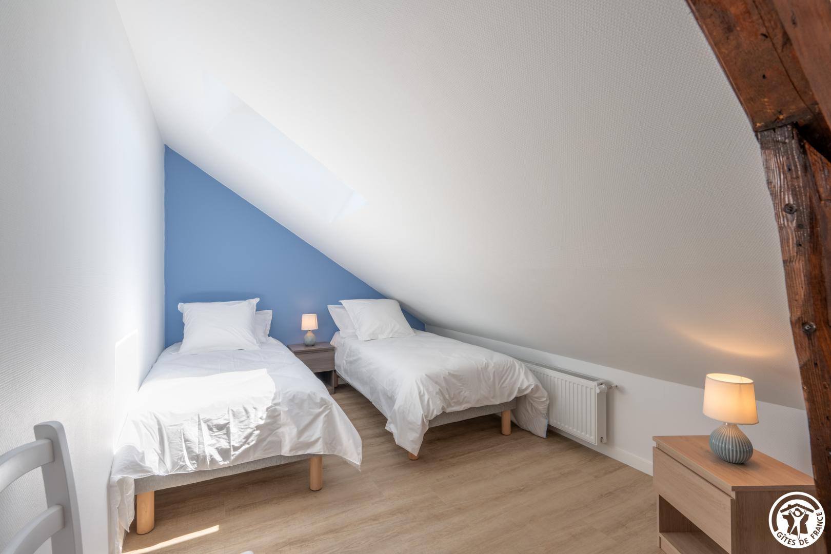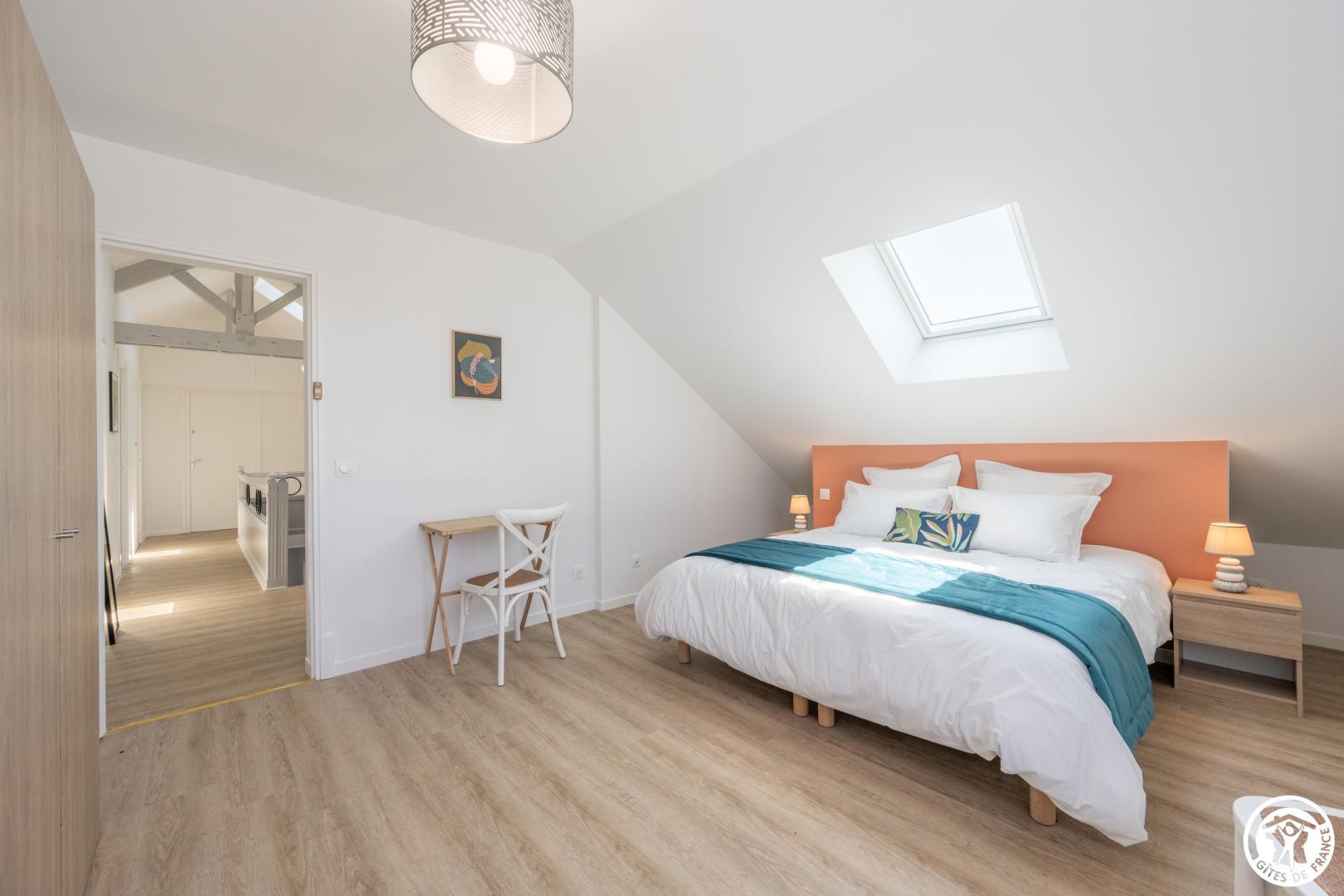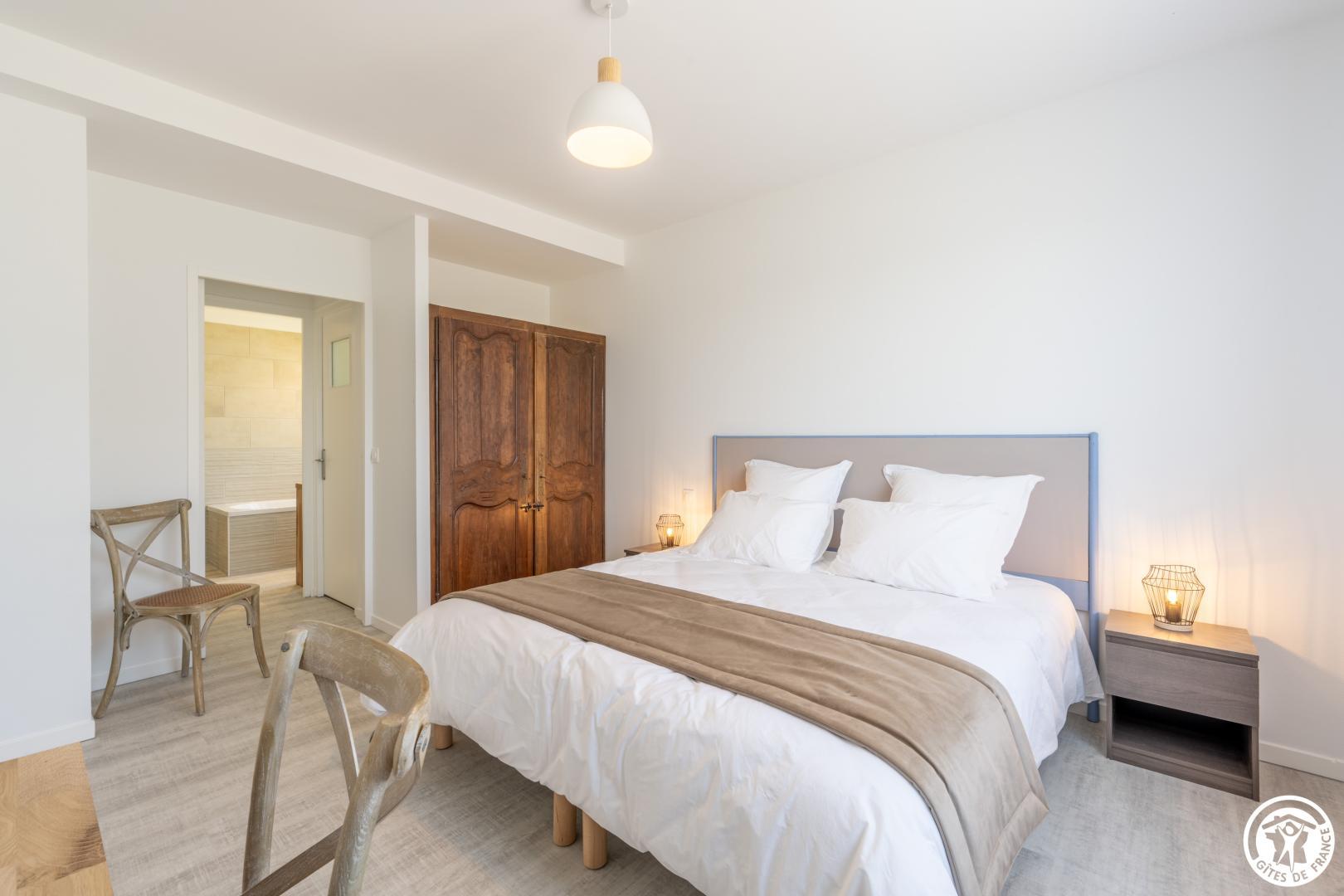 Gite indépendant de 200 m² aménagé sur 2 niveaux pour 12 personnes ( 5 chambres / 12 couchages indépendants). Rez-de-chaussée : Entrée, séjour/ salle à manger donnant sur la terrasse ouverte sur la cuisine équipée (Réfrigérateur / congélateur - lave-vaisselle, micro-onde, plaque à induction, cafetières, salon avec TV (110cm) . 1 chambre pour 2 personnes (2 lits 90x190cm), salle de bain (baignoire + douche) et WC privatif. 2ème chambre (2 lits 90x190cm), salle d'eau privative (douche 98 x87 cm). WC indépendants. Etage : Palier desservant 2 chambres pour 2 personnes (2 lits 90x190 cm) avec salle d'eau privative. 1 chambre pour 4 personnes (4 lits 90x190 cm). Salle d'eau (douche 84x84) et Wc indépendants. Jardin clos de 2000 m² avec salon de jardin, bain de soleil, barbecue. Sous-sol complet avec Lave linge, sèche-linge, baby-foot. Prise de recharge pour véhicule électrique . Tout est compris (lits faits, linge de toilette/ maison , chauffage, électricité). WIFI (fibre).