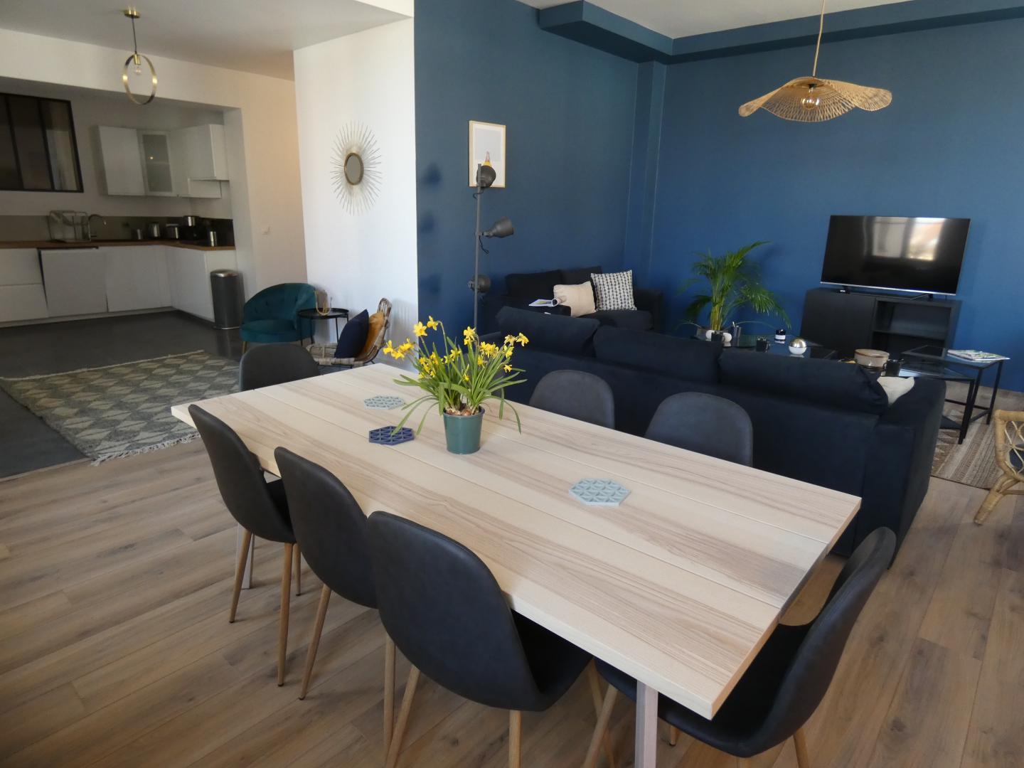 Ce spacieux appartement de 195 m² a été rénové avec goût, il peut accueillir jusque 8 personnes dans des conditions très confortables. Il est situé au rez de chaussée d'une résidence comprenant plusieurs gites et dispose de 5 chambres, 4 salles d'eau et 2 WC. Il est composé d'un agréable séjour traversant avec une grande cuisine équipée (micro-ondes - four - réfrigérateur - lave vaisselle - lave linge et sèche linge, cafetière, bouilloire....), de 5 chambres (dont 2 chambres individuelles, soit 8 lits au global). Il dispose également d'un jardin partagé ainsi que de grandes places de parking. Connexion internet en Wifi. Pour votre confort, le linge de maison, les serviettes de toilette, les draps sont compris dans la prestation. L'Électricité (relevé de compteur) vous sera facturée en fin de séjour. Ménage fin de séjour en supplément ajouter (150€)