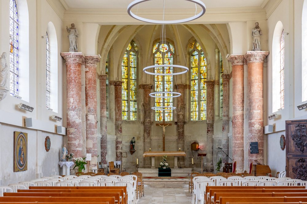 L’église Saint-Pierre-et-Saint-Paul, dont le chœur et l’absis apparaissent au XVIe siècle, fut partiellement détruite en 1870. La nef reconstruite au XIXe siècle présente un décalage de hauteur avec le chœur, donnant à l’ensemble une silhouette originale. De style roman, elle abrite une cloche de 1739, prénommée Adrienne Marie Françoise, et offre un intérieur agréable, notamment grâce à ses colonnes peintes, ses chapiteaux romans et ses vitraux. Des rénovations ont été entreprises en 2019-2020 pour préserver le bâtiment.