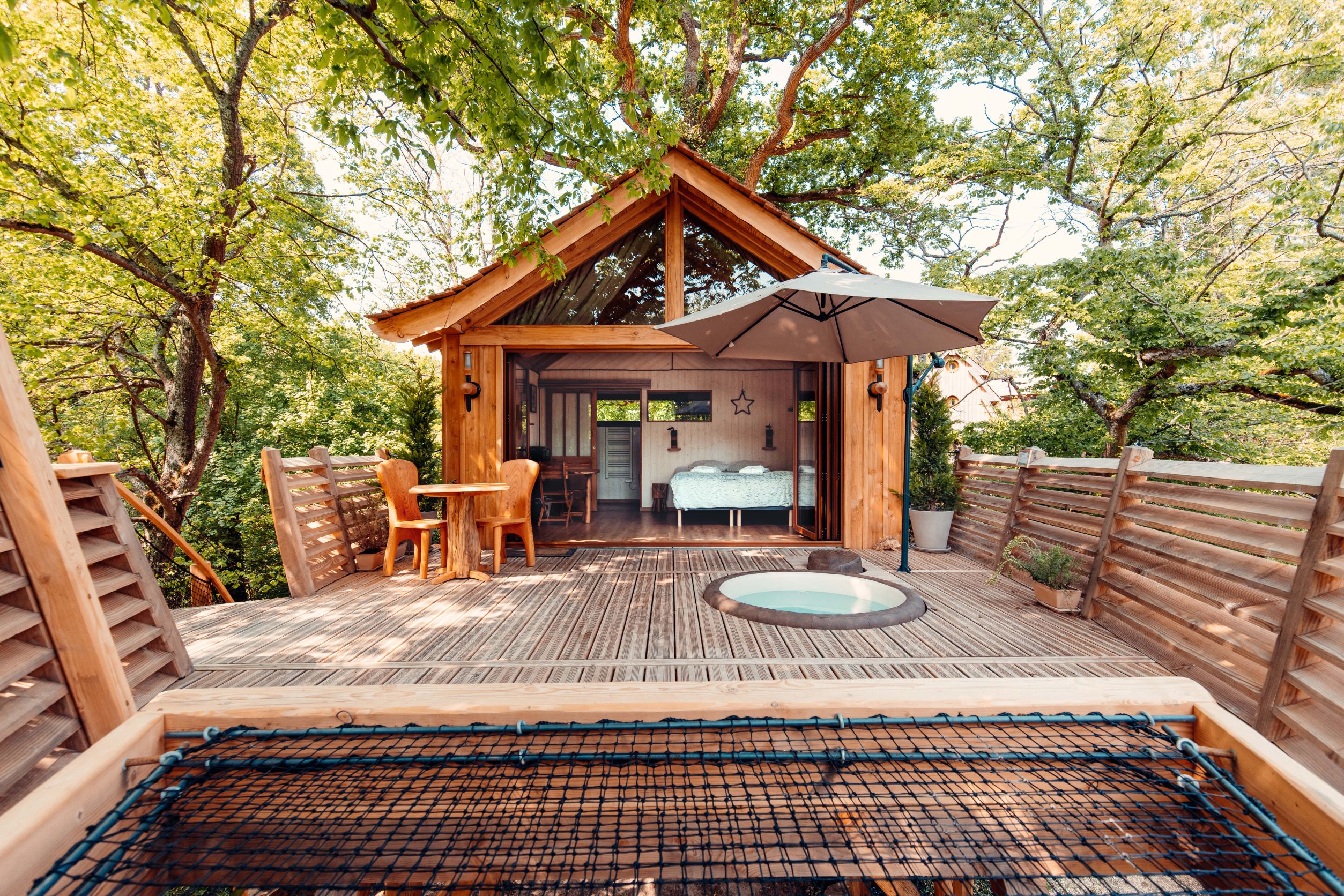 Pour un séjour cocooning, optez pour l'une des cabanes perchées à 4 mètres au milieu des arbres. Sur votre terrasse, vous profiterez d'eau à 38°C dans votre jacuzzi privatif. Au petit matin, vous savourez un copieux petit-déjeuner apporté dans un panier en osier à l'heure convenue. Pour votre confort, toutes les cabanes disposent de leur propre salle de bain, d'eau et d'électricité.
