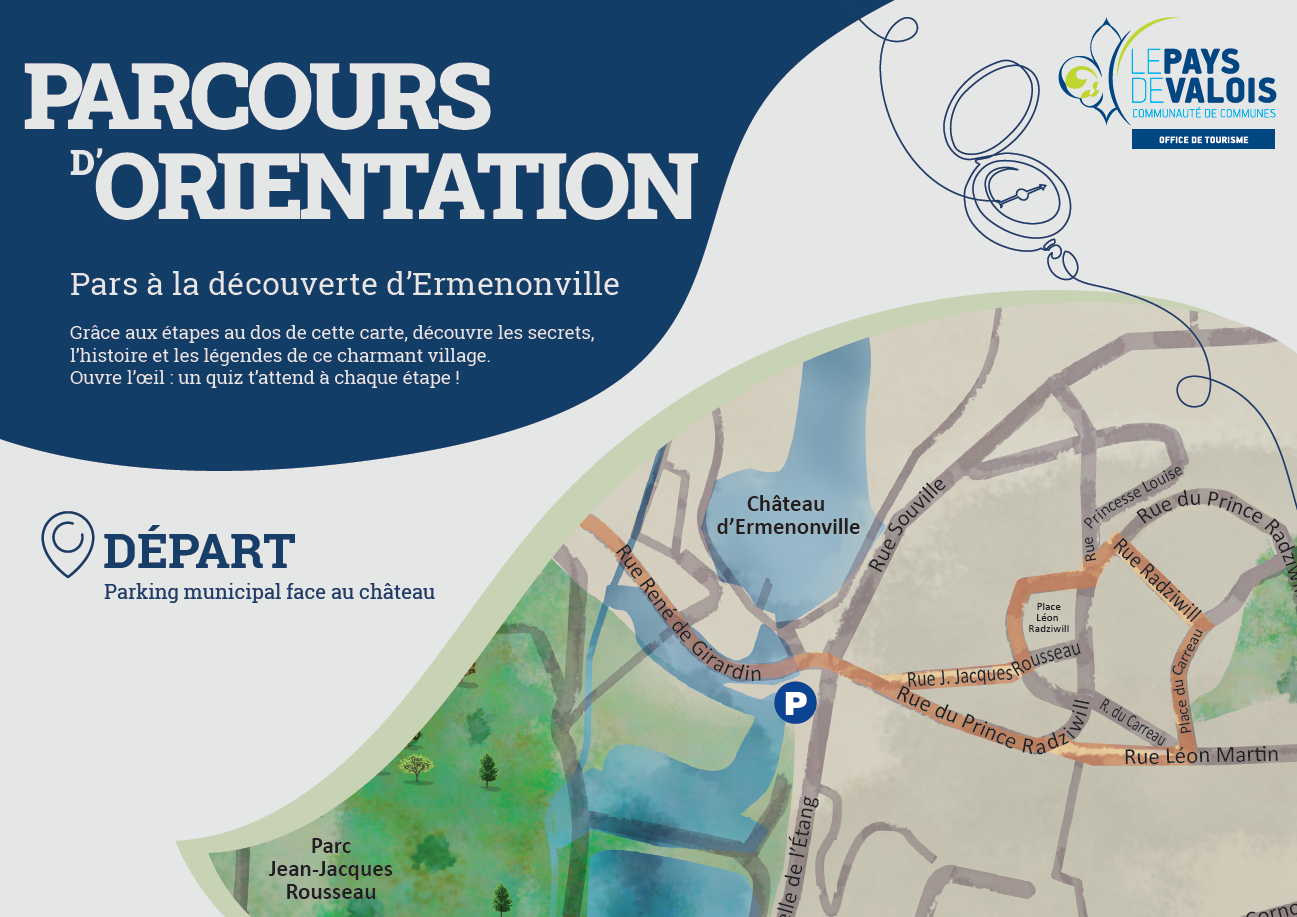 Munis d’une carte, partez à la recherche de 12 lieux à découvrir dans la commune. À chaque étape, un monument, un détail ou une anecdote à observer… et un petit quiz pour tester votre sens de l’observation et vos connaissances. Une façon amusante d’explorer le patrimoine, l’histoire et les recoins parfois méconnus d’Ermenonville.