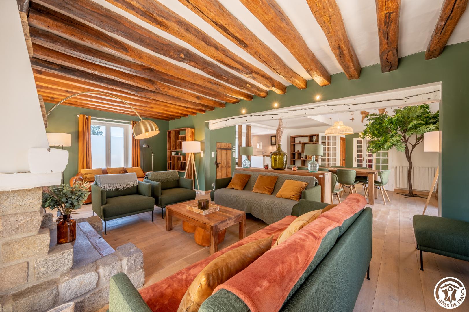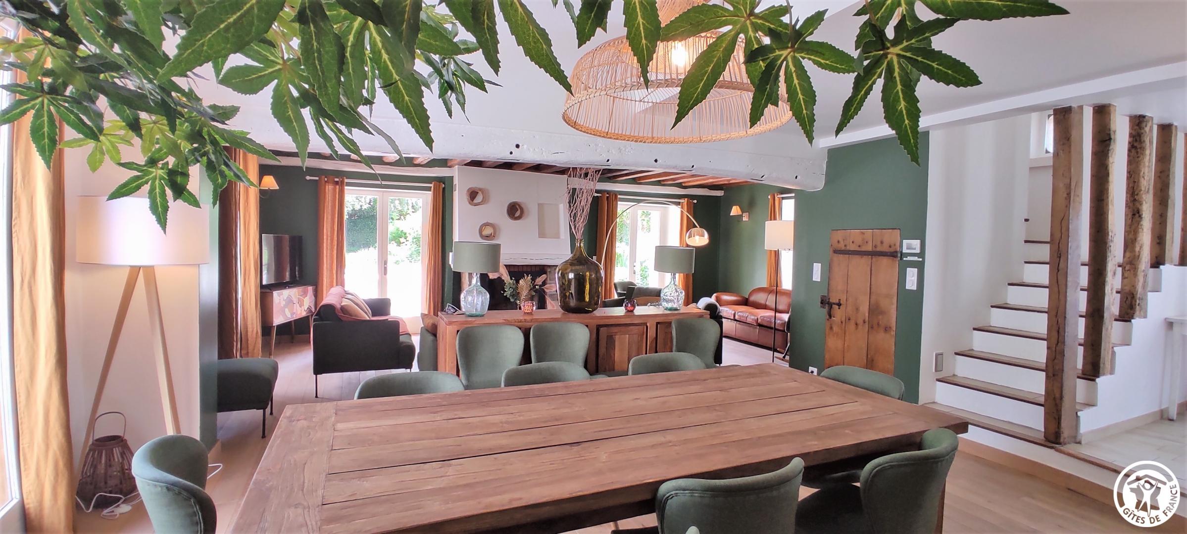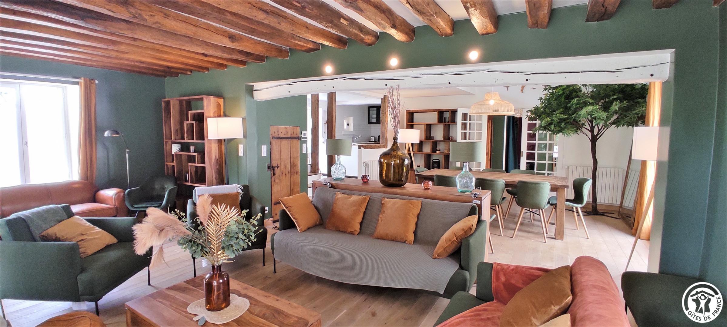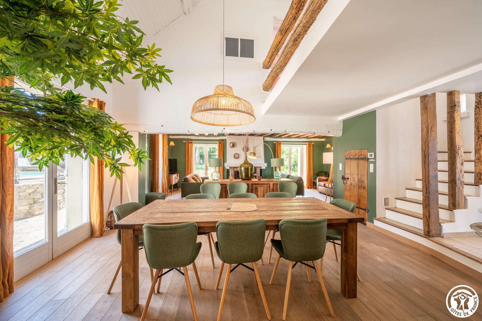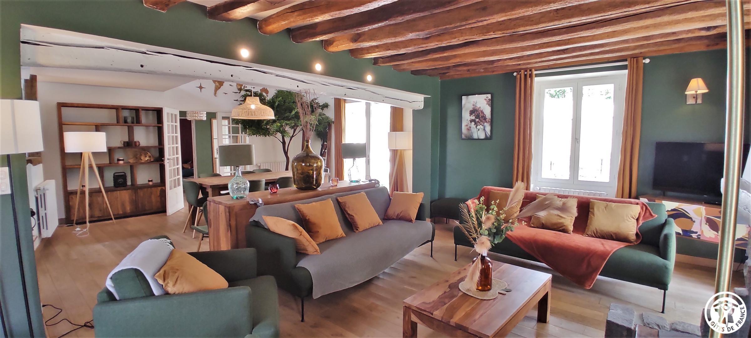 "Les Roches" vous accueille avec sa grande piscine chauffée l'été (dimension : 8x5m - chauffée du 15 mai au 15 septembre) et ses soirées au coin du feu l'hiver. Il est aménagé pour 10 personnes , il dispose de 5 chambres, 2 salles de bains/ d'eau. Ce gite confortable est situé au calme dans le hameau de Sennevières, en face de la ferme des propriétaires et de son magasin de produit locaux. Vous pourrez profiter d'un grand salon/salle à manger avec TV et cheminée, cuisine totalement équipée (lave vaisselle, four et micro onde), buanderie (2 lave-linge et 1 sèche linge). Vous pourrez profiter d'un jardin de 700m² avc salon de jardin,, chaises longue, barbecue. Les véhicules peuvent stationner dans la cour de ferme des propriétaires située en face ou dans la rue devant le gite. internet Fibre et Wifi. Tout est compris (Les lits sont faits à votre arrivée, les serviettes de toilettes, le chauffage , le ménage) Equipement bébé (lit et chaise haute)