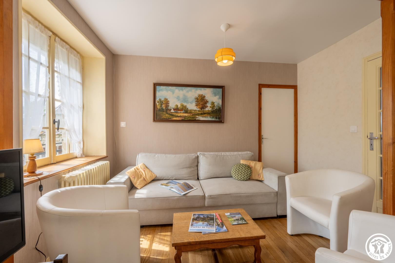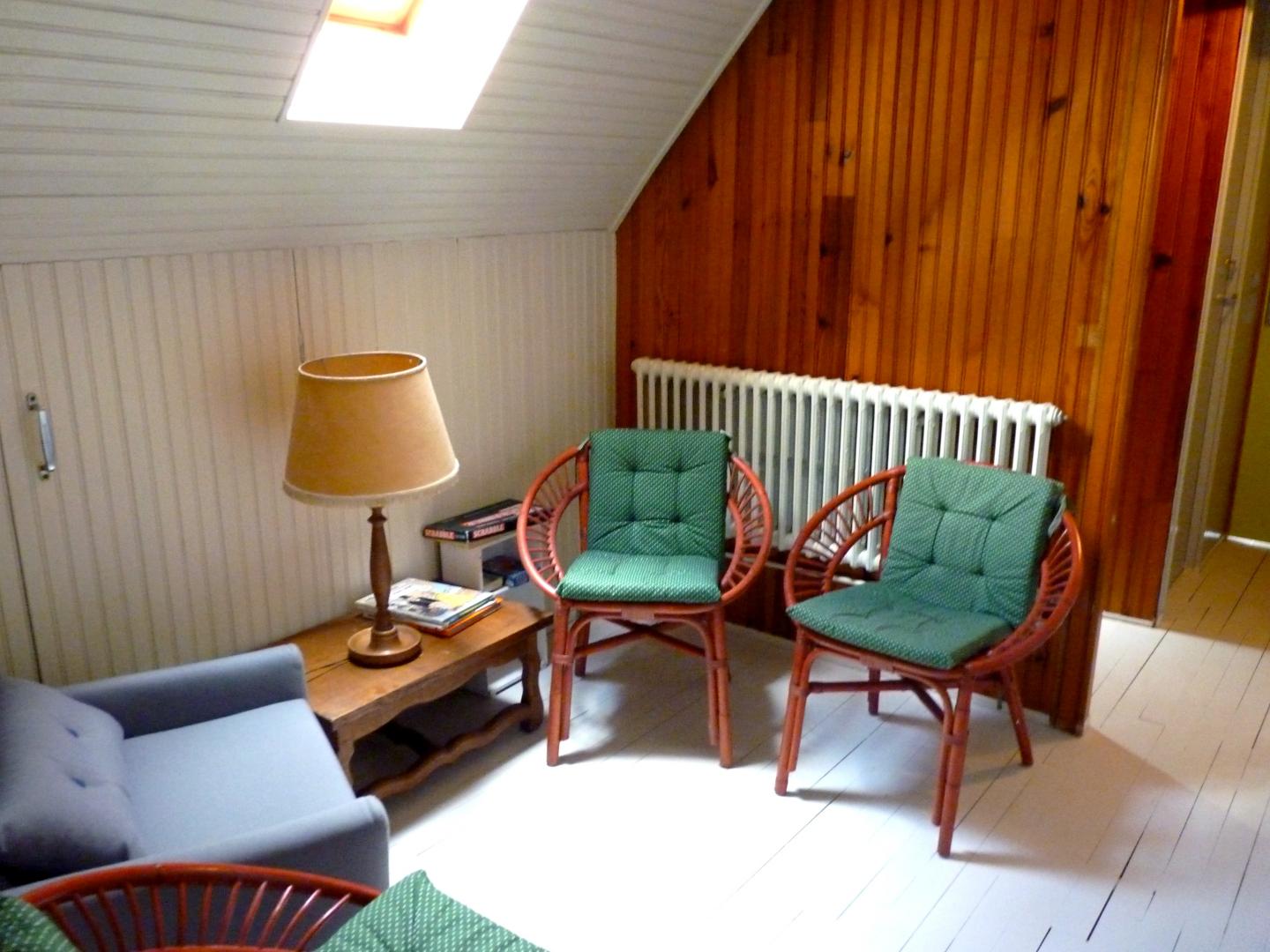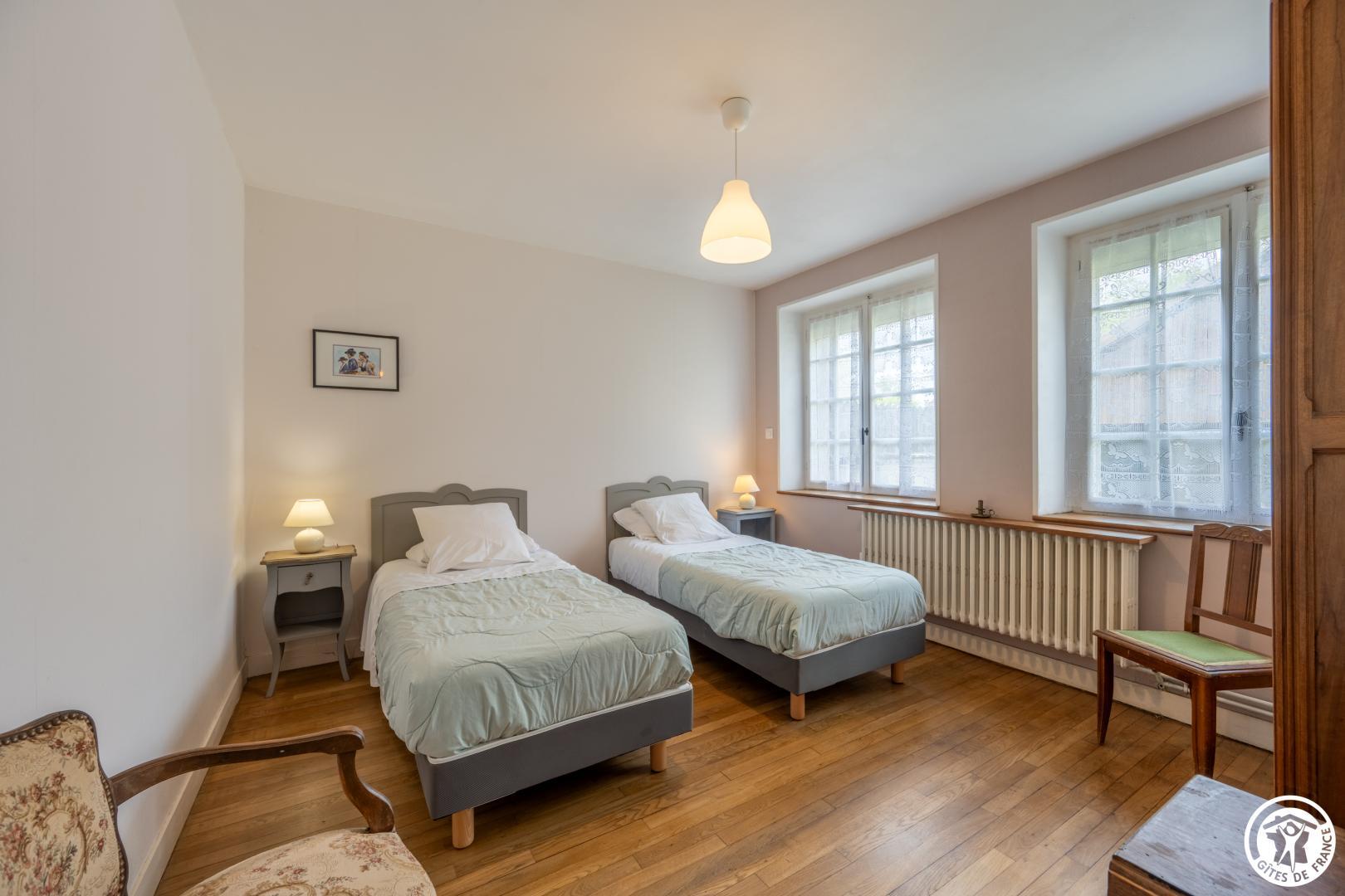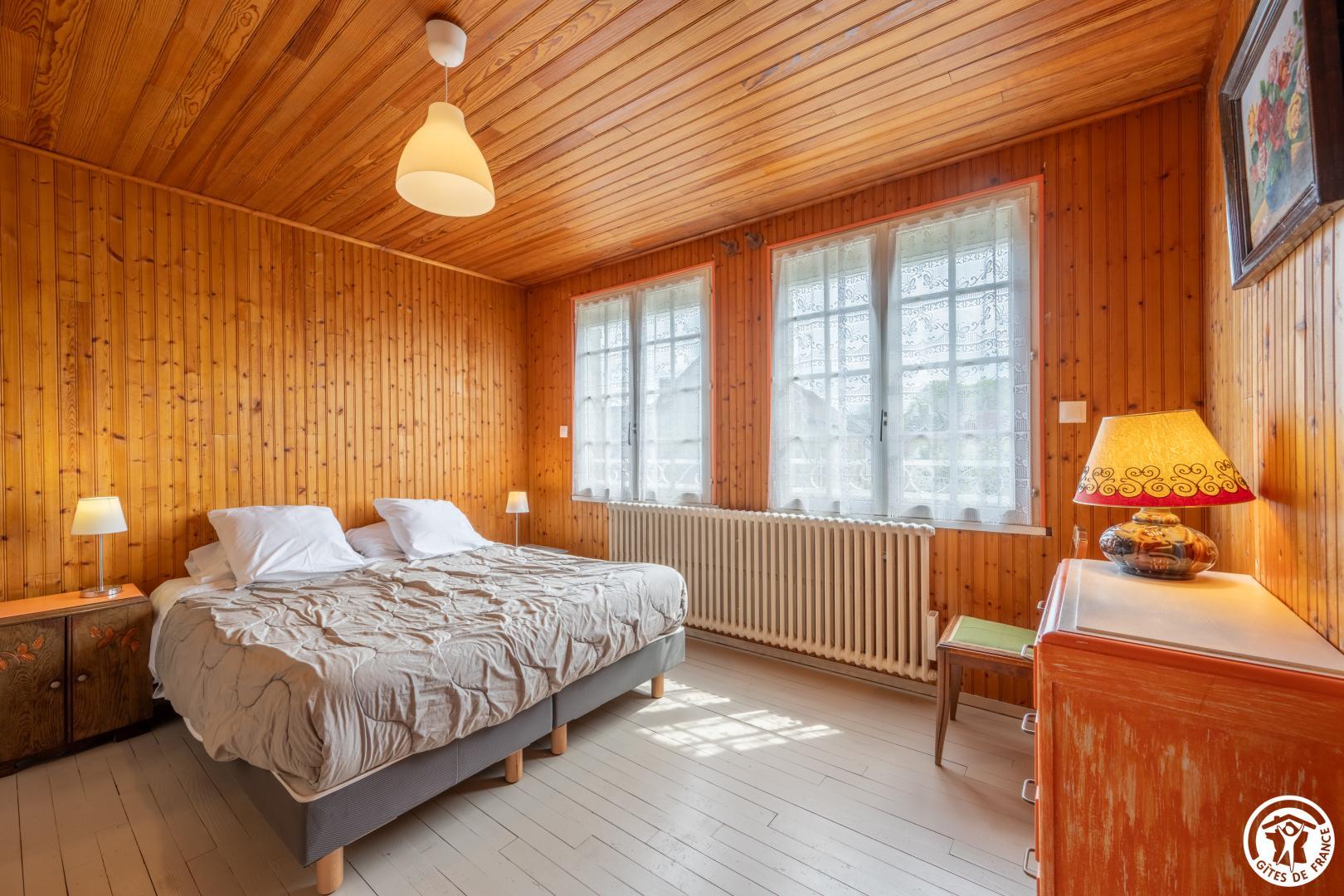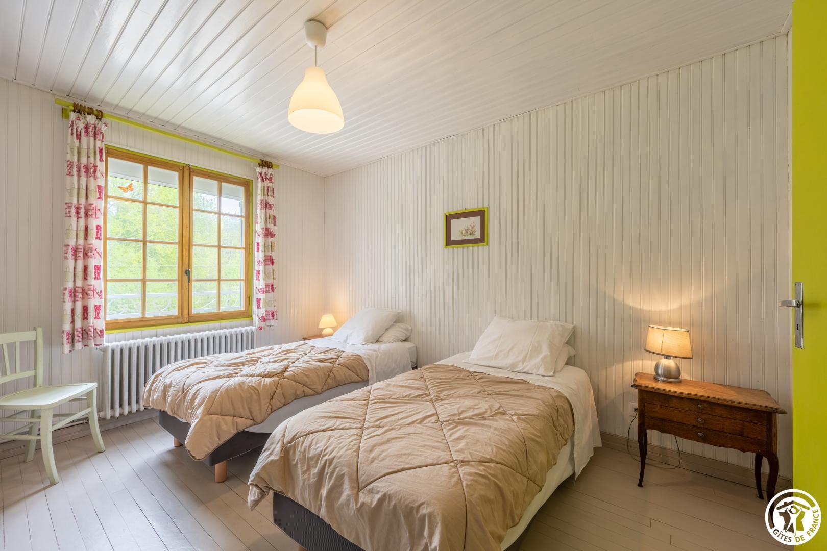 Cette maison attire l'attention par ses pierres apparentes et sa situation en face des bois au calme. Tout en étant mitoyenne son accès est indépendant et un grand espace, juste en face est disponible pour garer plusieurs véhicules. Un garage peut être mis à disposition pour les vélos. L' entrée de la maison est surélevée de quelques marches . A l'entrée, une salle avec un baby-Foot vous attend. Vous disposerez d'un grand séjour avec coin salon, 2 chambres sont situées au rez-de-chaussée ( 1 lit 140 x 190 - 2 lits 90 x 190 modulables dans la deuxième), Wc indépendant et salle de bain (lave linge - sèche linge). Vous disposerez d'une cuisine indépendante totalement équipée. A l'étage : 3 chambres (2 lits 90x 190 modulables- 1 lit 140 x 190 - 1 lit 160 x 200 modulable en deux lits individuels pour la troisième - Wc indépendant - salle d'eau. Grand jardin arboré de 700 m² avec salon de jardin. WIFI. Vos animaux de compagnie (chiens, chats) sont les bienvenues dans notre gite.