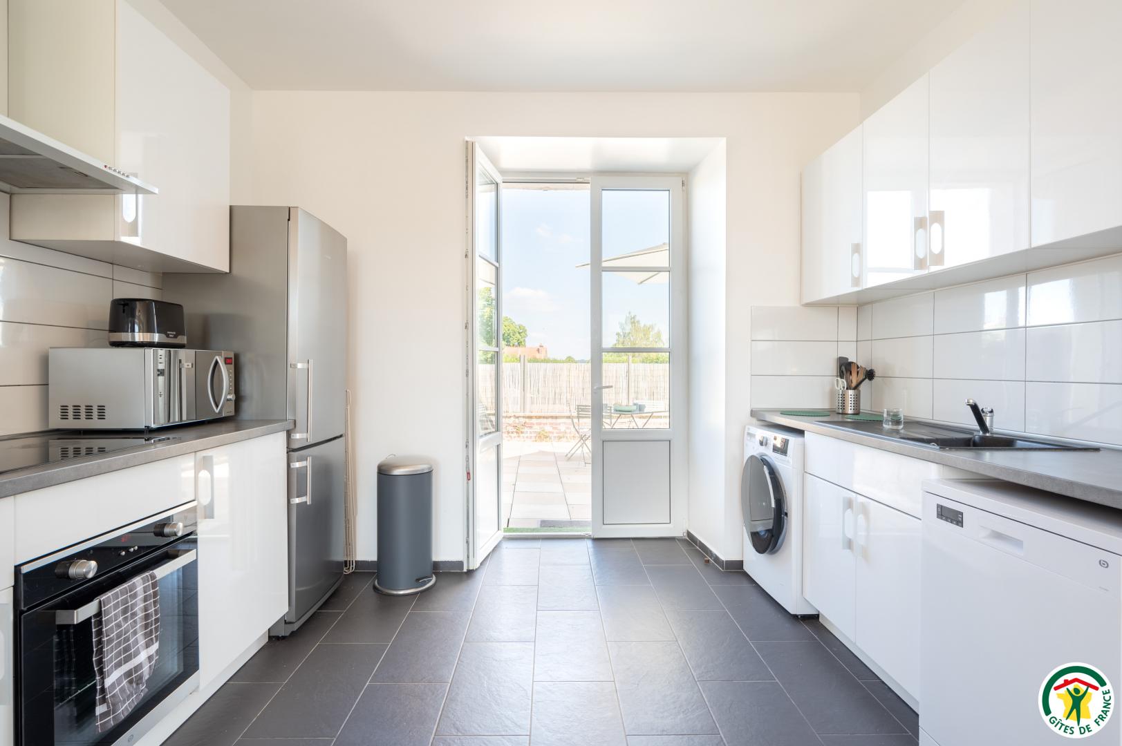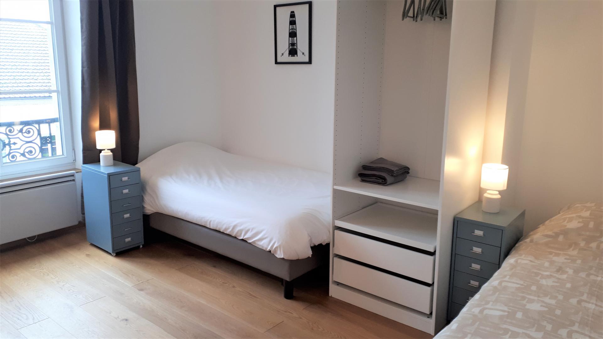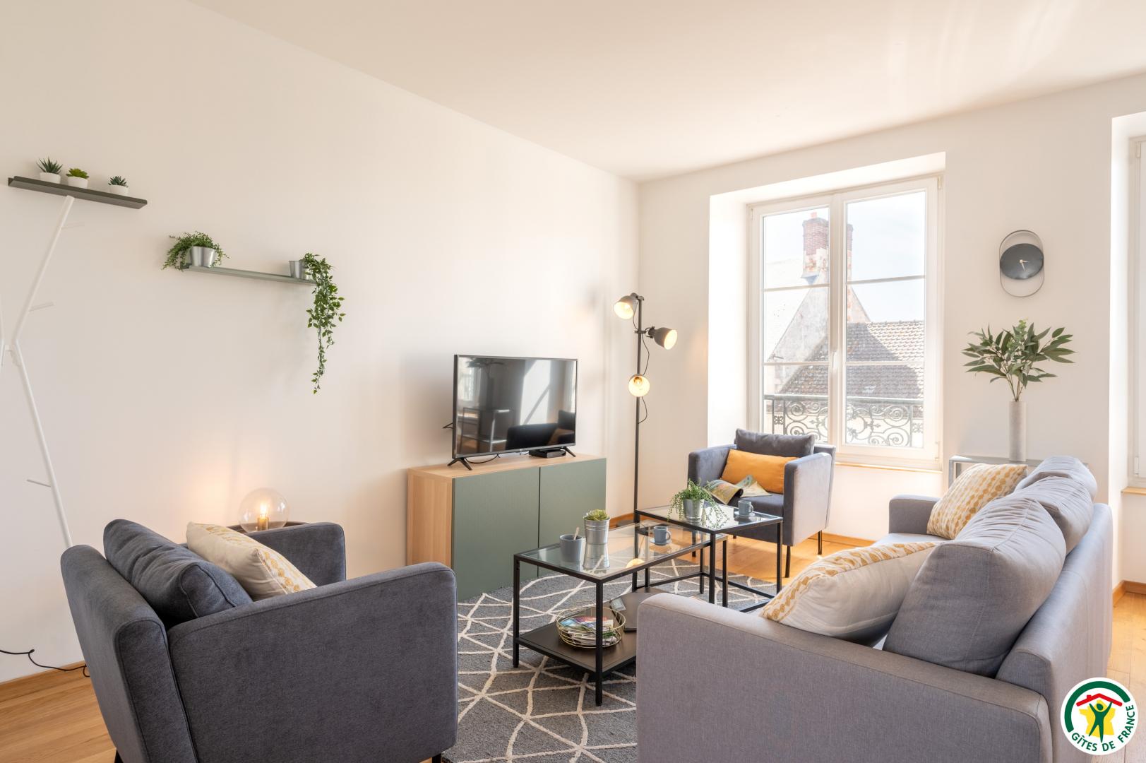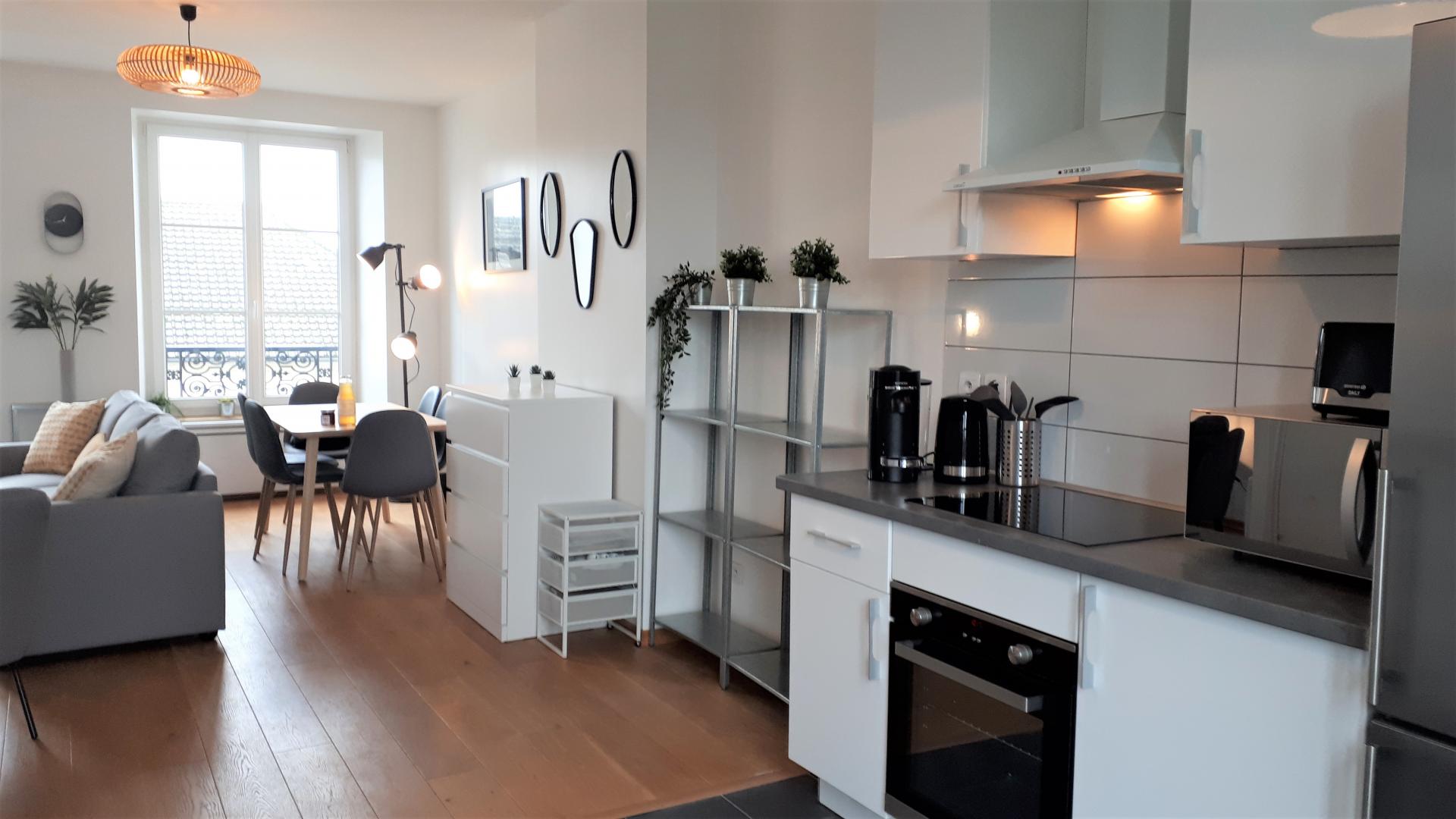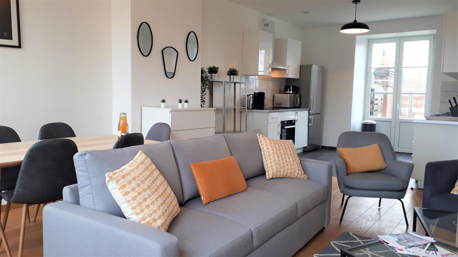 Appartement de 90 m² , pour 6 personnes, rénové avec goût, au 2d étage (sans ascenseur). Il est composé d'un séjour / salon très lumineux sans vis-à-vis avec TV, ouvert sur une cuisine très bien équipée (Lave-vaisselle, Lave-linge/Sèche-linge, four, micro-ondes, réfrigérateur/congélateur, cafetière avec dosette), de 3 chambres pouvant accueillir 2 personnes chacune (1 lit 140x190 cm / 2 lits 90x200 cm / 2 lits 90x200 cm + 120x200 cm ). Salle de bain équipée d'une baignoire avec douchette, d'un meuble vasque et 1 WC indépendant avec lave mains. Terrasse privative, avec salon de jardin et barbecue. Place de parking dans la cour fermée de la résidence. Pour votre confort, le linge de maison, les serviettes de toilette, les draps sont compris dans le prix. Le ménage de fin de séjour est en supplément. Connexion en WIFI.