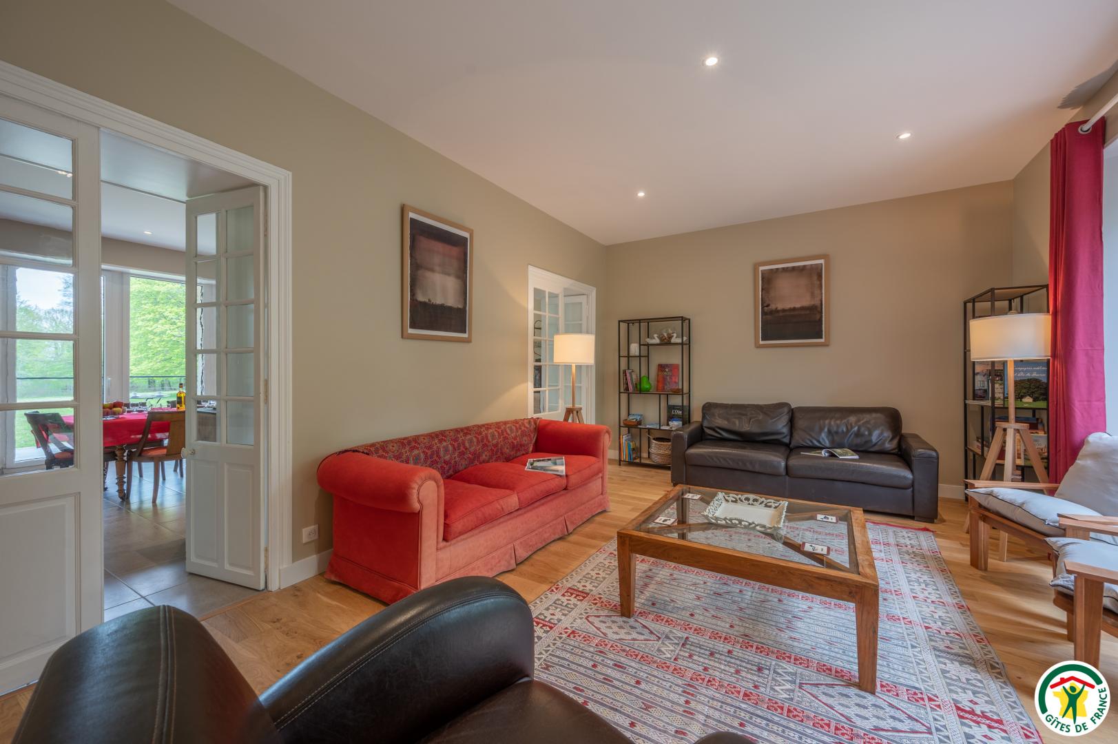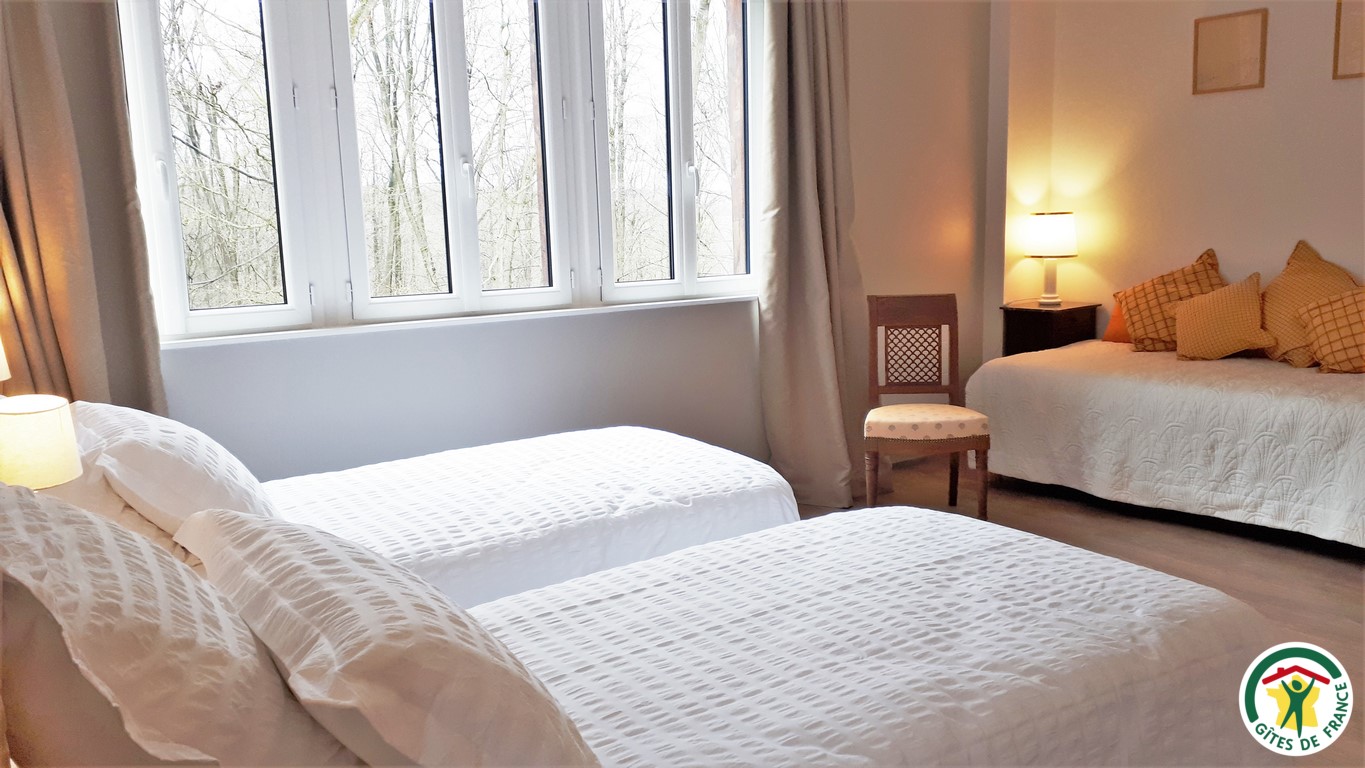 "Le Bois du Valois" est une maison d'époque Napoléon III de 240 m² totalement restaurée en 2020 et aménagée sur 3 niveaux pour accueillir 9 personnes. La maison dispose d'une belle entrée donnant accès à une grande cuisine équipée (piano de cuisson à gaz, micro-onde, réfrigérateur/ congélateur, lave vaisselle, ...), un salon avec canapés, fauteuils, TV, enceinte connectée, Wc indépendant . Buanderie en sous-sol avec lave-linge et sèche linge. Au 1er étage : 2 chambres (lit 180x200 cm modulable en 2 lits 90x200 cm/ 3 lits 90x200 cm)- Chaque chambre dispose de sa salle de douche privative . une salle de bain indépendante avec WC. Au 2ème étage : 2 chambres (lit 180x200 cm modulable en 2 lits 90x200 cm) avec 2 salles de douche privatives - Wc indépendant Ce gite est équipé pour le télétravail (wifi - bureau - prises électriques, prises RJ45 dans chaque pièce). Vous profiterez d'une terrasse avec salon de jardin, barbecue. Stationnement privatif dans le parc. Gite tout compris