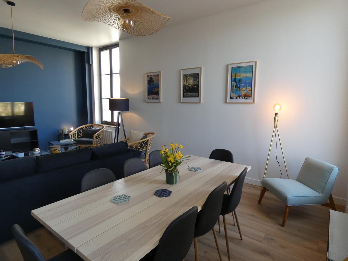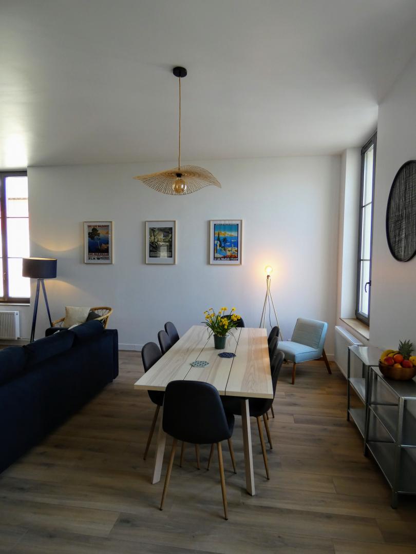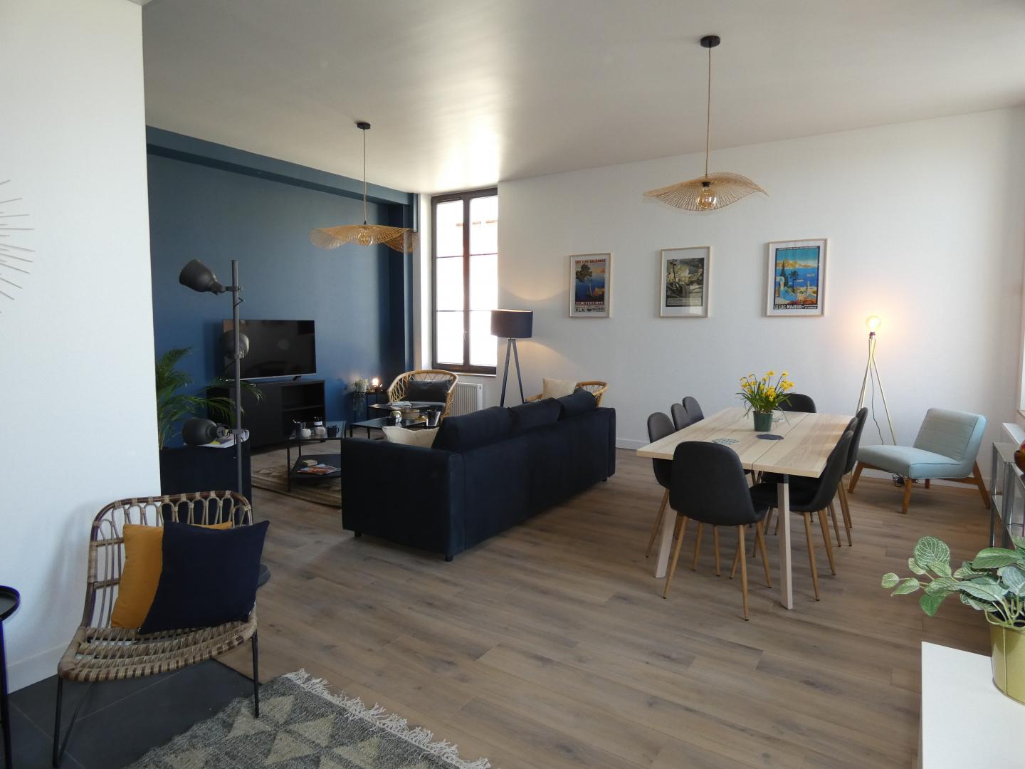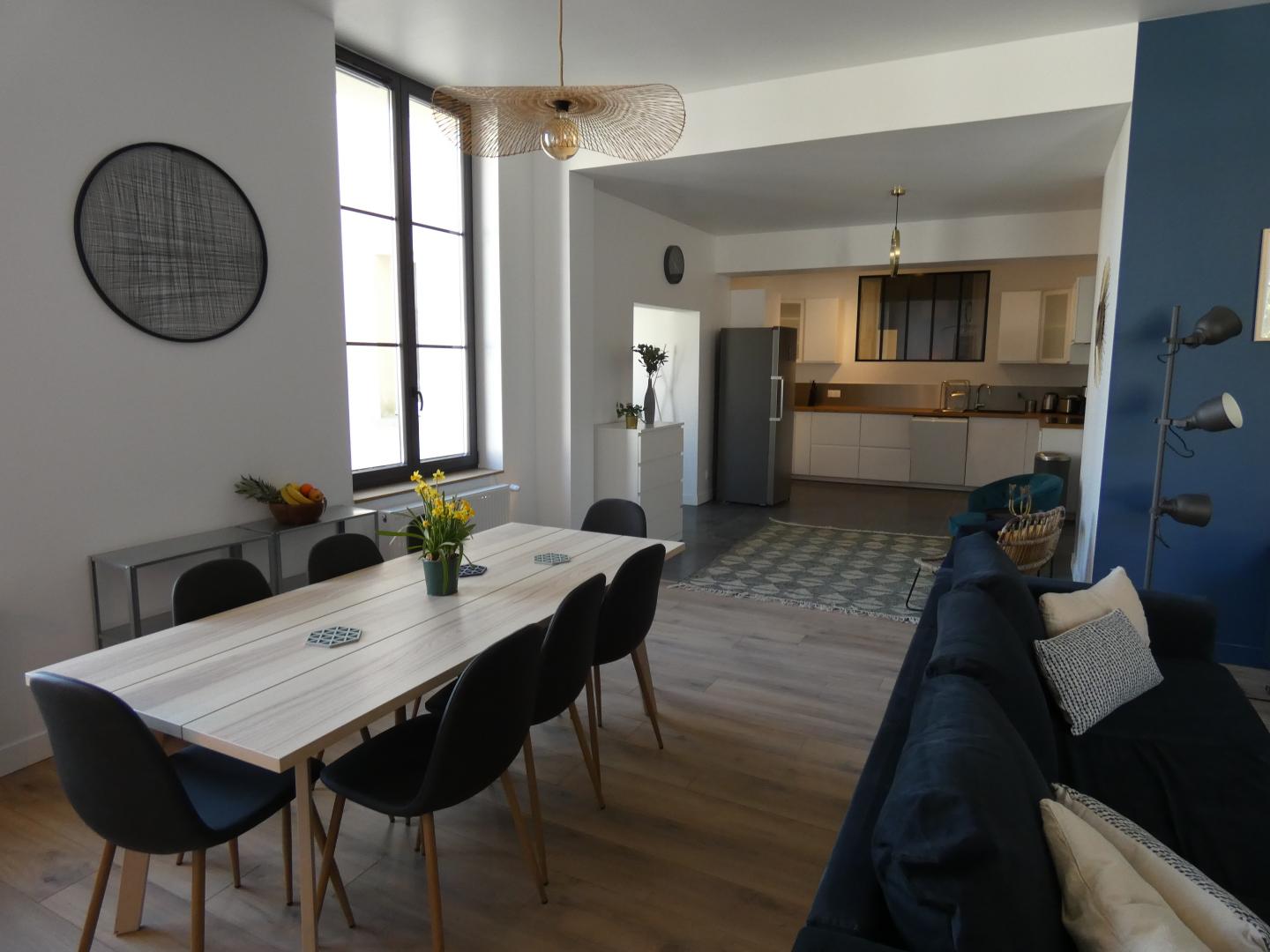 Ce spacieux appartement de 195 m² a été rénové avec goût, il peut accueillir jusque 8 personnes dans des conditions très confortables. Il est situé au rez de chaussée d'une résidence comprenant plusieurs gites et dispose de 5 chambres, 4 salles d'eau et 2 WC. Il est composé d'un agréable séjour traversant avec une grande cuisine équipée (micro-ondes - four - réfrigérateur - lave vaisselle - lave linge et sèche linge, cafetière, bouilloire....), de 5 chambres (dont 2 chambres individuelles, soit 8 lits au global). Il dispose également d'un jardin partagé ainsi que de grandes places de parking. Connexion internet en Wifi. Pour votre confort, le linge de maison, les serviettes de toilette, les draps sont compris dans la prestation. L'Électricité (relevé de compteur) vous sera facturée en fin de séjour. Ménage fin de séjour en supplément ajouter (150€)