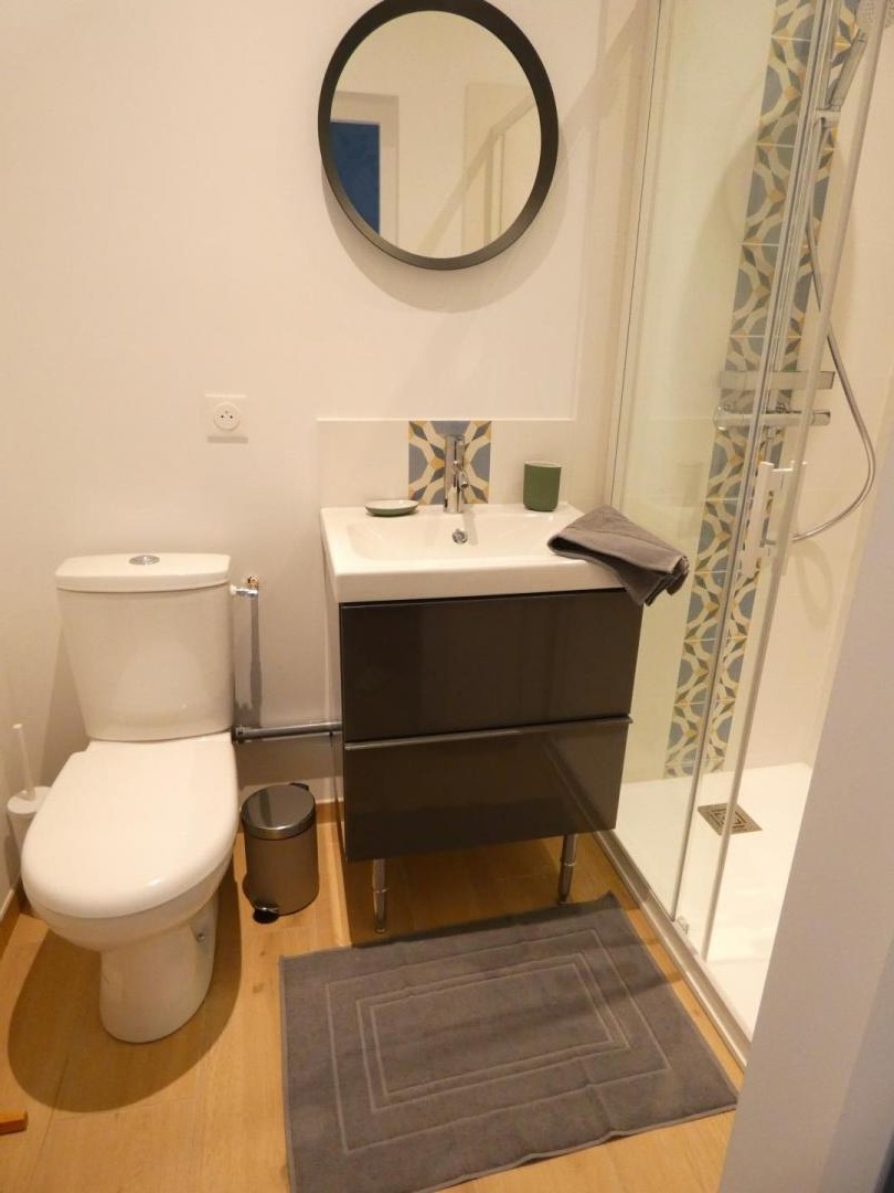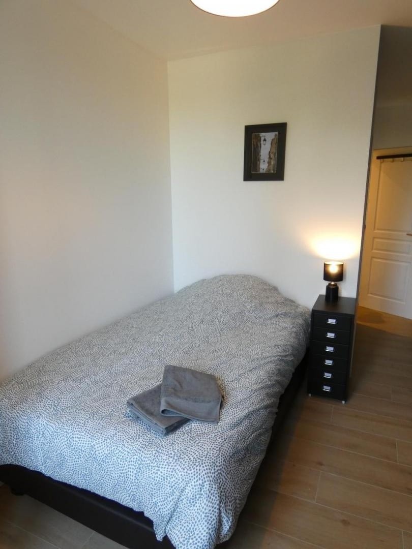 Cet appartement spacieux de 113m² a été rénové avec goût peut accueillir jusque 4 personnes dans des conditions très confortables, en effet chaque hôte dispose de sa propre chambre avec sa propre salle de bain et ses WC. Tranquillité et confort pour chacun ! ! Ce logement situé au 2ème étage d'une résidence comprenant plusieurs gites, il dispose de 4 chambres individuelles ( 4 lis simples 120x200), 1 salle de bain et 1 WC par chambre. Il est composé d'un agréable séjour avec une grande cuisine équipée (micro-ondes - four - réfrigérateur - lave vaisselle - lave linge et sèche linge, cafetière, bouilloire....). Il dispose également d'un jardin partagé ainsi que de grandes places de parking. Connexion internet en Wifi. Pour votre confort, le linge de maison, les serviettes de toilette, les draps sont compris dans la prestation. L'Électricité (relevé de compteur) vous sera facturés en fin de séjour . Le ménage de fin de séjour est en supplément à ajouter (120€).