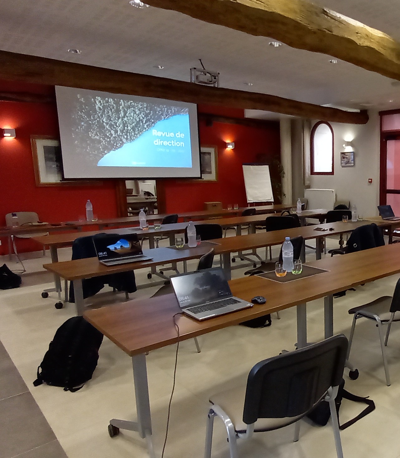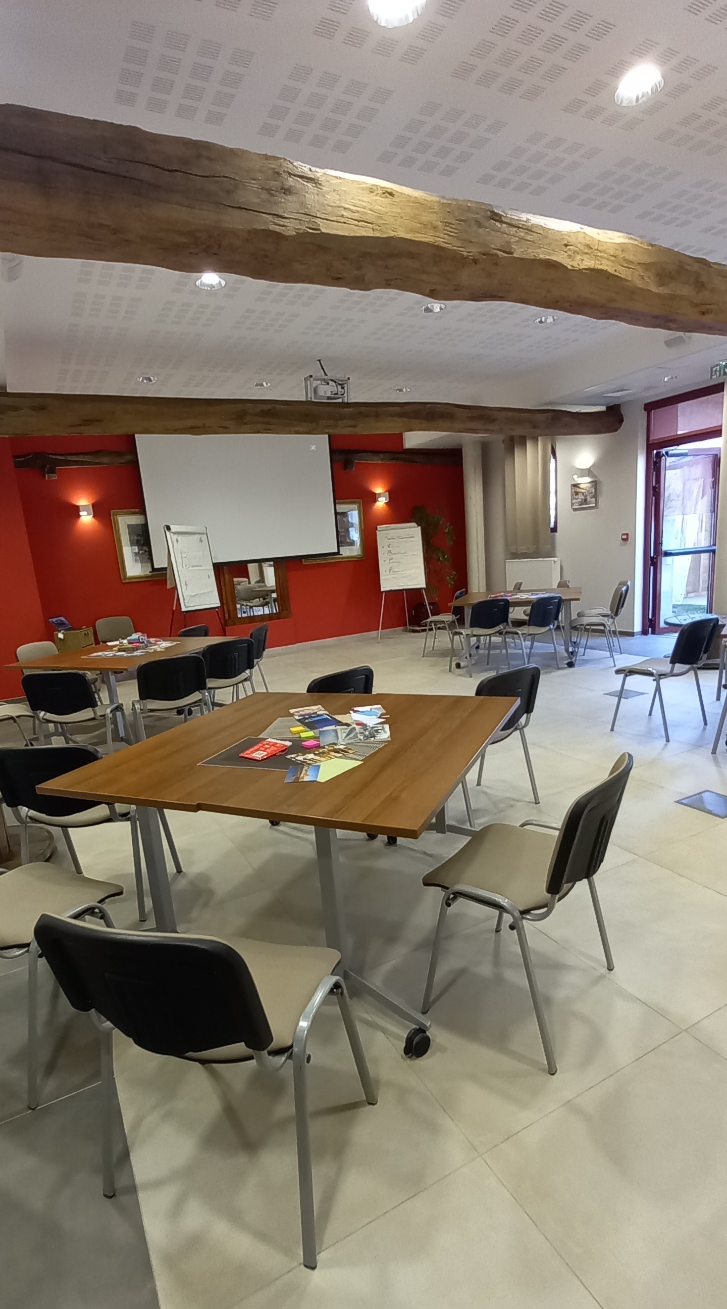 En réunion professionnelle vous appréciez la sérénité du domaine, sa praticité, avec son équipement, sa salle, sa restauration, les espaces installés à votre demande.